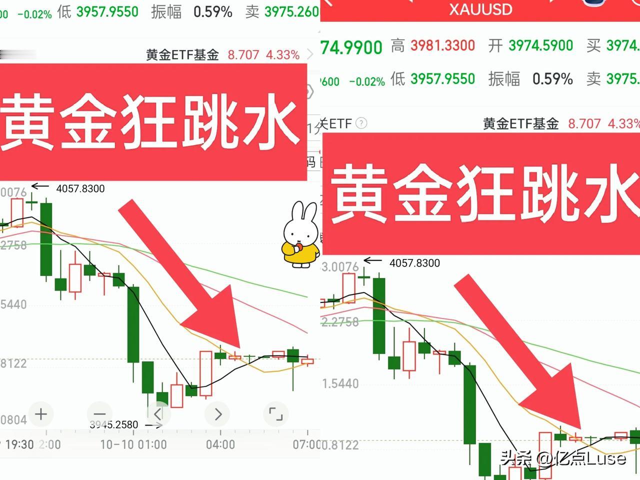国际黄金这波跳水太猛啦! 昨晚可真是让投资者心颤。 黄金回调超100美元/盎司,直逼3900美元/盎司的支撑位。中长期投资者纠结,短期追高的更被动。 其实啊,这跳水可能是美元走强、地缘政治缓和等因素闹的。不过也别慌,后续金价不是没机会涨,震荡后若有利好,就可能回升。但要是再有利空,那估计还得跌。 我觉得,投资黄金得沉住气,别盲目跟风。大家觉得黄金后续是涨是跌?你认为黄金还会跌回300元一克吗 金价行情 金价 黄金行情价格