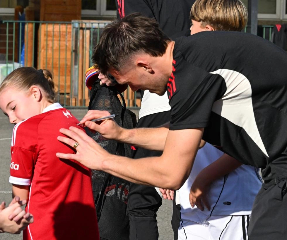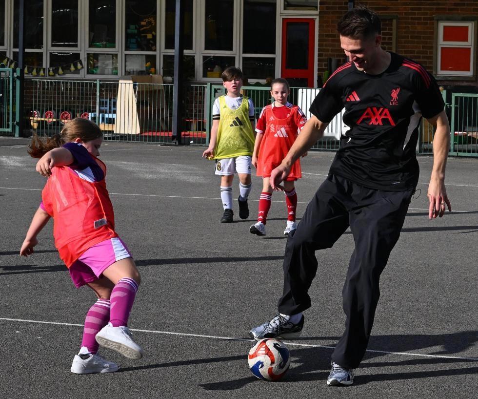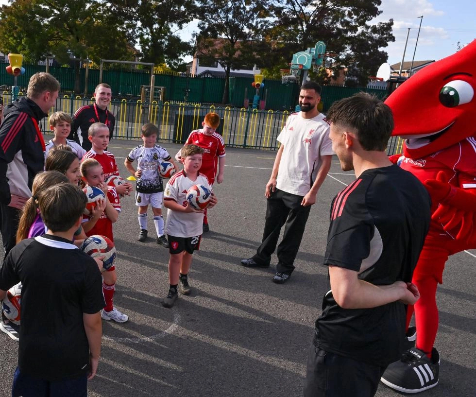 这些孩子当时正在科克比的圣劳伦斯小学参加课后足球技能训练,当这两位利物浦队门将出现在操场时,孩子们都感到十分震惊。