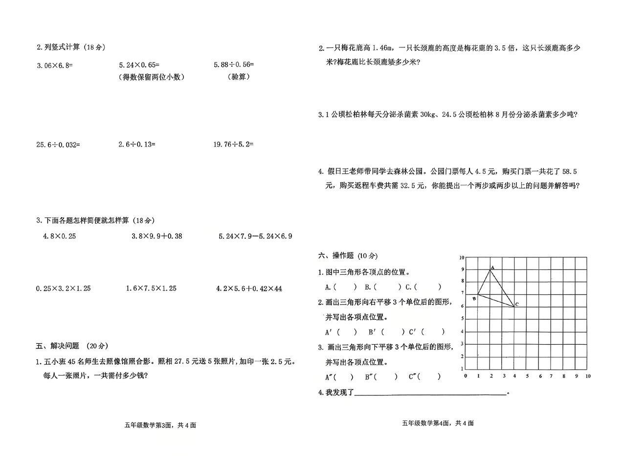 五数上2024第一次月考试卷#小学数学