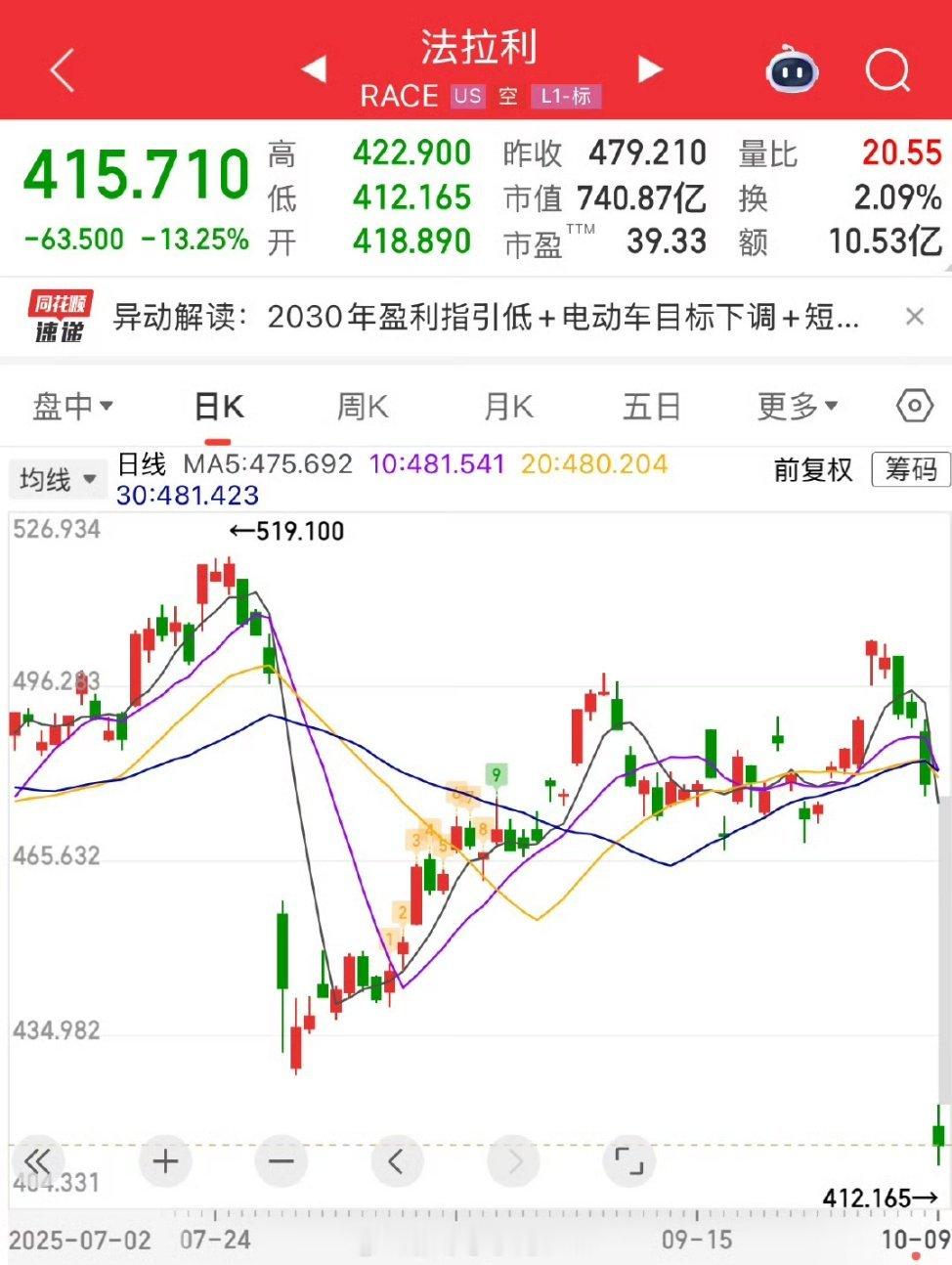 法拉利跌超13%法拉利刚刚公布三万转四电机方案,股票跌了100亿美元[笑cry]