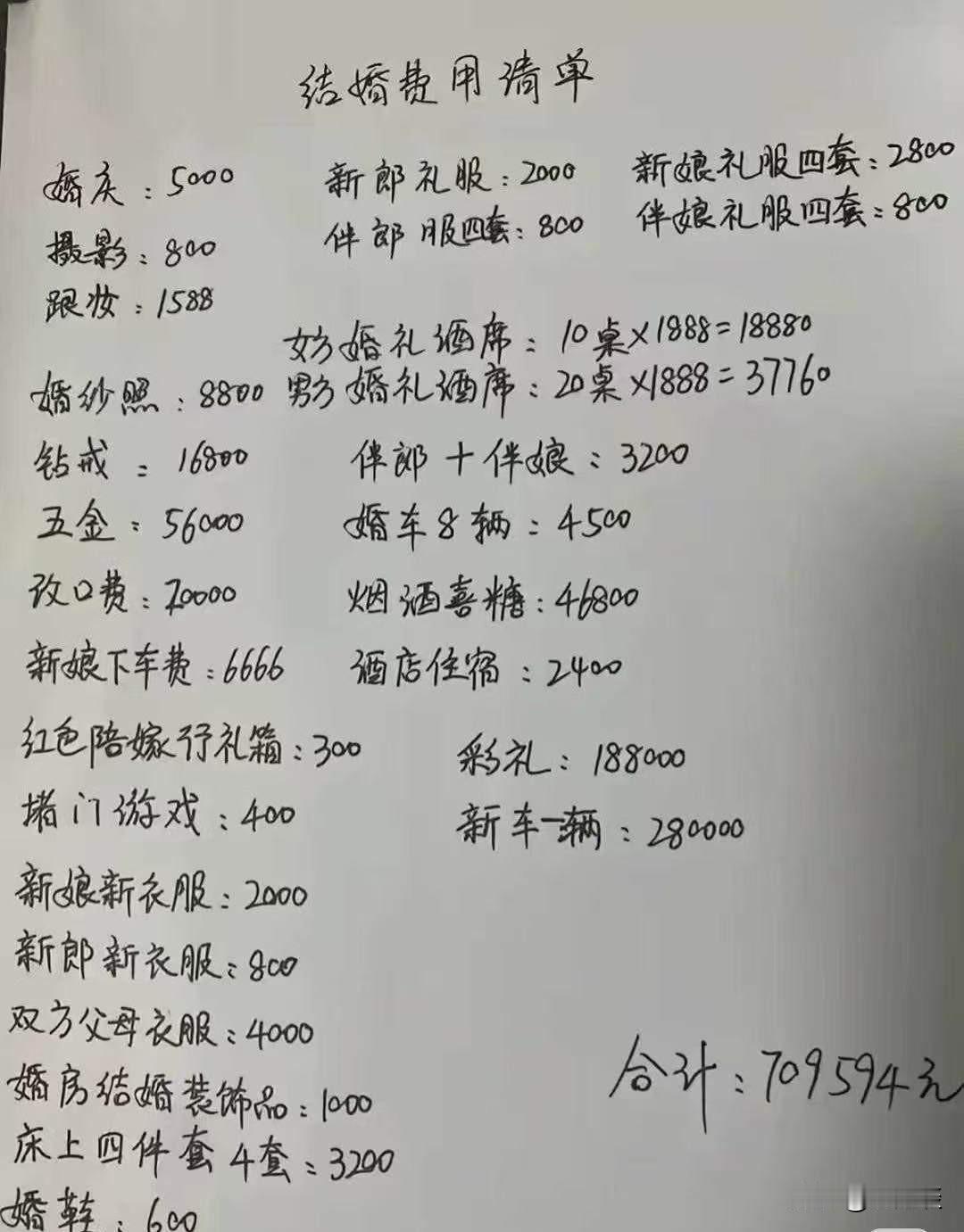 结婚本来是两个人,或者两个家庭的事情但是现实当中,结婚基本上是男人的事情绝大多数的费用是由男方家庭承担。男生要结婚,他需要支出的费用不单单是彩礼钱,还需要承担双方的礼服钱,办酒席的钱,还要买房子,买汽车,买钻戒,下车钱,堵门钱,改口费…形形色色都是钱,还有什么钱没有算进去呢?而且这些费用承担的主体基本上是男方,要结婚实在是太难了,特别是对于底层人而言,结个婚基本上把家底都掏光了。结婚对于男生而言基本上是全家托底,如果婚姻失败,很多男方家庭因婚姻失败返贫!