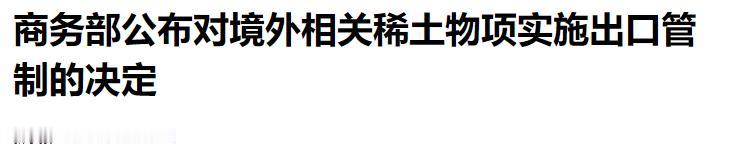 不等美国动手,中国先动手了。商务部昨天宣布,原则上不予许可向境外军事用户出口稀土金属的申请,这包括向管制管控企业,以及它们的控股子公司、分公司和分支机构的出口申请。而且还禁止出口稀土开采、分离、回收等设备和技术。 这步棋走得太精准,精准到既掐住了关键产业链的“七寸”,又守住了国家安全的底线,这两项稀土管制新规,看似是常规的贸易管理调整,实则每一项条款都戳中了问题的核心。 此次管制最鲜明的特点是实现了“物项+技术”的双重闭环管控,根据61号公告,管制范围不仅包括稀土金属本身,还创新性地纳入了“含中国原产稀土0.1%价值占比的外国制造产品”,这意味着即便是在海外加工的稀土制品,只要源头有中国成分,再出口就必须获得许可。 而62号公告则直接锁定技术命脉,从开采、冶炼分离到磁材制造的全套技术,甚至设计图纸、工艺参数这类核心资料,以及生产线的调试维护技术,都被纳入管制范畴,未经许可不得向境外转移。 这种管控力度并非空穴来风,今年初就曾查出有境外企业通过第三国转口,将中国稀土加工成磁材后用于中东某国的导弹制造,新规正是精准堵住了这类规避监管的漏洞。 对境外军事用户的针对性管控,更是切中了稀土战略价值的核心,稀土中的钐、铽、镝等中重稀土元素,是现代军工制造的“刚需品”——美军F-35战斗机的雷达和发动机依赖含镝的钕铁硼永磁材料抗高温,宙斯盾驱逐舰的相控阵雷达离不开钐钴磁体,这些关键部件的制造都绕不开中国稀土供应链。 数据显示,美国去年进口的稀土中68%来自中国,即便想从澳大利亚等国采购原材料,冶炼分离环节仍高度依赖中国技术支持,得州一家稀土企业就因缺乏中国工艺,生产线建设三年仍无法投产,此次明确对军事用途申请“原则上不予许可”,相当于直接切断了境外军事力量获取核心材料的关键渠道,这种精准打击背后,是对稀土军事应用场景的深刻洞察。 而我们有底气走出这步棋,源于在全球稀土产业中的绝对主导地位,尽管全球多国都有稀土储量,但中国不仅以4400万吨储量位居世界第一,更在产业链核心环节形成垄断——2024年稀土产量达27万吨,占全球69%,冶炼分离产能占比同样高达69%,而精加工产能更是超过90%。 从永磁材料来看,2025年全球烧结钕铁硼产量预计29.67万吨,中国就占27.18万吨,这种产能优势短期内难以替代,弗若斯特沙利文的预测显示,海外新矿在未来2-3年内很难形成有效供应;技术层面的优势更明显,从稀土矿加工到高性能磁材制造的全流程技术,中国已形成完整体系,这也是62号公告能实现技术管控的核心支撑。 更显智慧的是,此次管制并非“一刀切”的封闭政策,而是充满弹性的精准调控,公告明确将已进入公共领域的技术、基础科学研究成果排除在管制之外,普通商业用途只要合规就能申请许可,人道主义救援所需物项更是直接豁免。 对于半导体、人工智能等具有潜在军事用途的领域,也采用“逐案审批”模式,既防范了技术滥用风险,又保留了正常产业合作的空间,这种分寸感体现了政策制定的成熟度,同时建立的合规告知机制,要求出口经营者向上下游传递管控信息,形成了全供应链的协同监管网络。 从长远看,这一政策既是对国家安全的主动捍卫,也是对稀土产业价值的重新定义,过去稀土因“贱卖”引发关注,如今通过管制将资源优势转化为战略主动权,倒逼全球产业链正视中国在稀土领域的核心地位。 这绝非简单的“贸易反制”,而是中国在全球供应链重构中的战略选择,通过清晰的规则界定和精准的管控措施,既遏制了稀土向军事敏感领域的非法流动,又维护了正常的产业秩序,更向世界传递了中国维护国家安全的坚定立场,堪称资源安全与产业发展协同推进的典范!