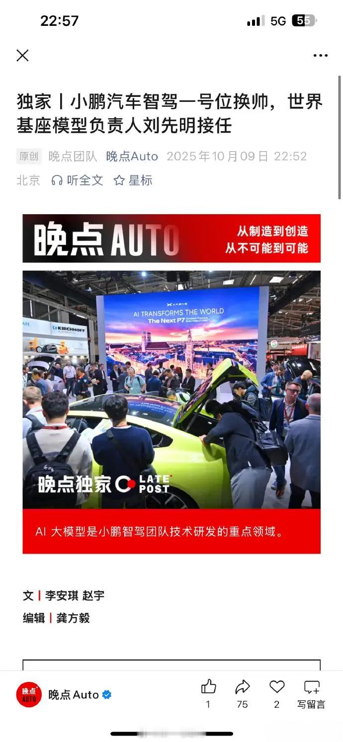 近两日,小鹏汽车与蔚来几乎同时传出智能驾驶核心高管变动的消息。小鹏汽车自动驾驶中心负责人李力耘不再担任原职,由世界基座模型负责人刘先明接任,但李力耘仍在职