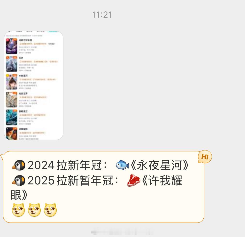🐧2024拉新年冠:🐟《永夜星河》🐧2025拉新暂年冠:🥩《许我耀眼》