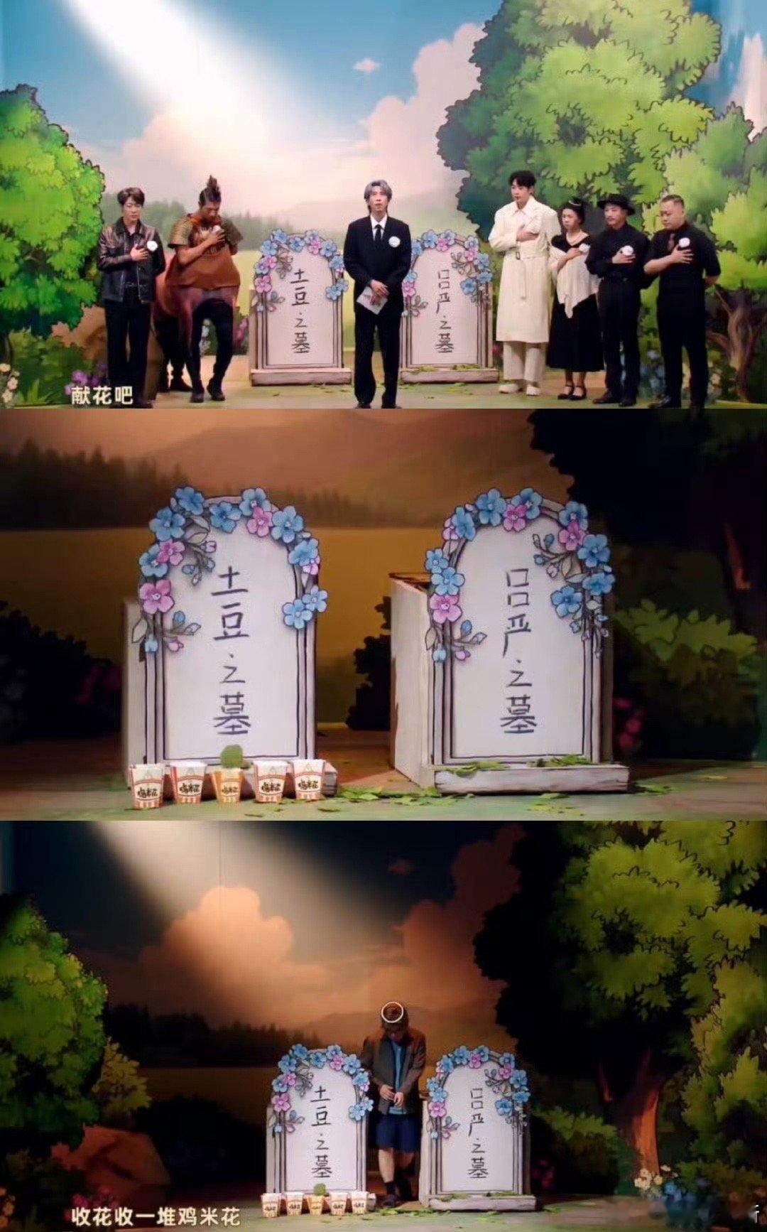 谁家献花献的是鸡米花喜人奇妙夜 喜夜演员脑回路太绝了!《吐槽吧!吕小严》里,土豆叔给父亲献花居然递鸡米花,吕小严一句“凉了!”怼得他没招,装傻幽默超戳笑点,最后全员用鸡米花献花,直接把对喜剧的热爱刻进DNA!