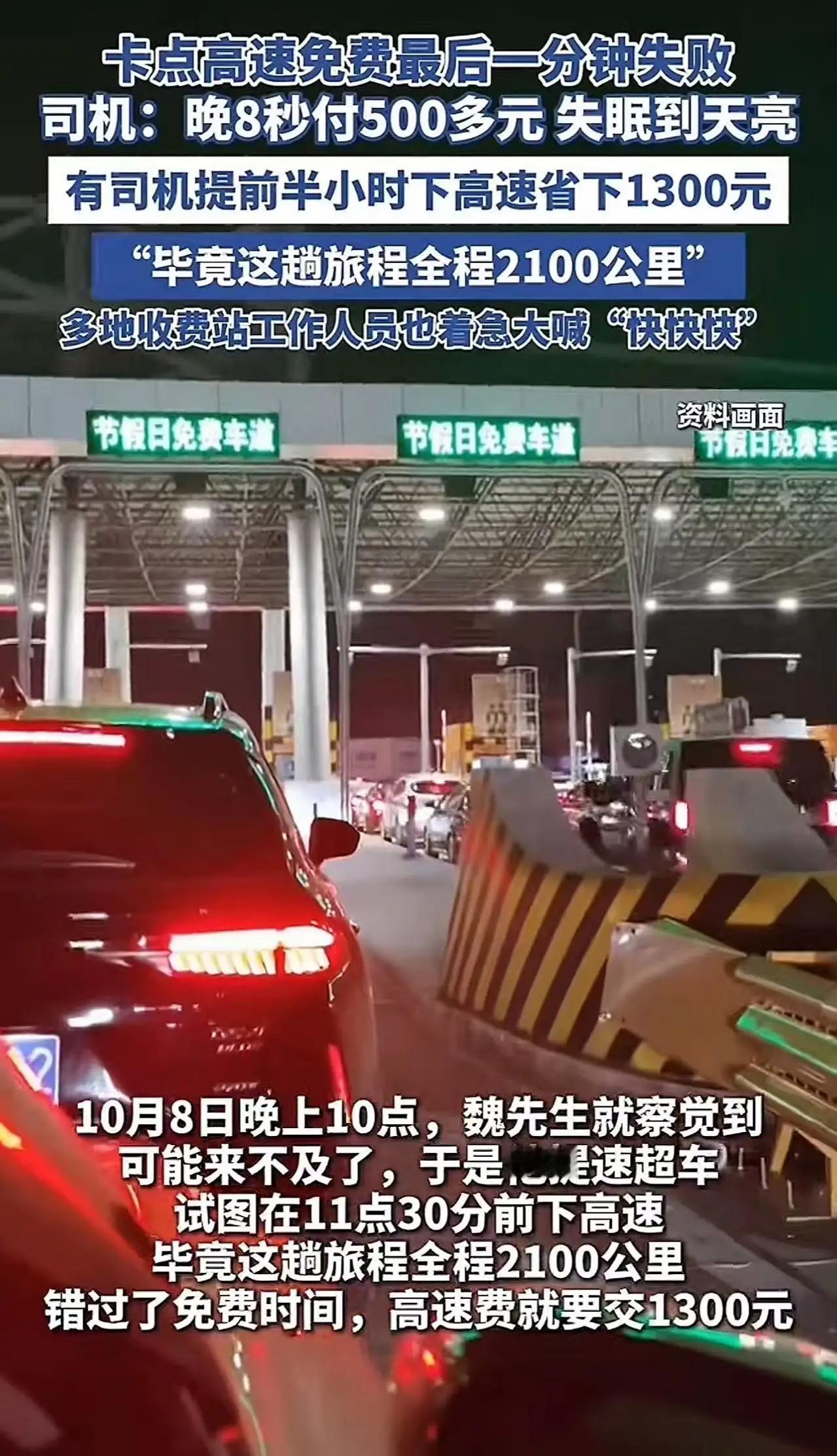 8秒钟,500块没了!国庆高速“卡点”翻车实录 国庆假期结束,高速免费倒计时成了