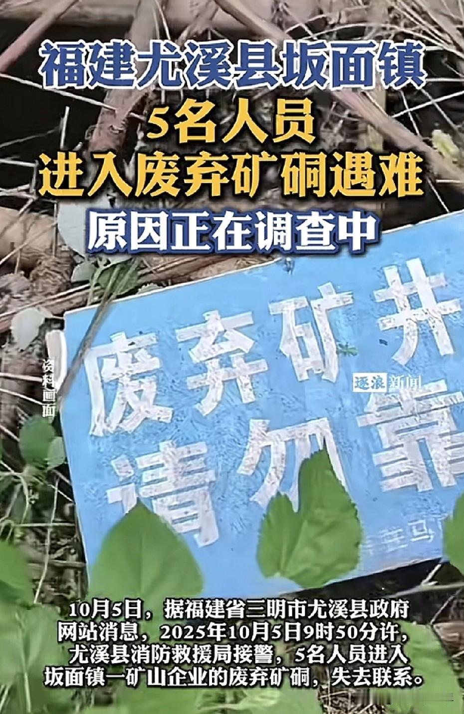 果然和金子有关的都会让人着迷,福建尤溪县5人进入废弃矿硐遇难,经官方查明均是外地人,专门来到此地的,至于为何会进入早已经废弃的金矿,应急局工作人员称可能是进去拿点什么东西,最后出了意外。 尤溪县警方是事发当天上午接的报案,下午找到5个人,送医后均已经没有了生命体征,那里面黑洞洞的很容易一氧化碳中毒。这个废弃金矿可有明显的警示标志,洞口被封住的,你要是不主动进去就不会进去。