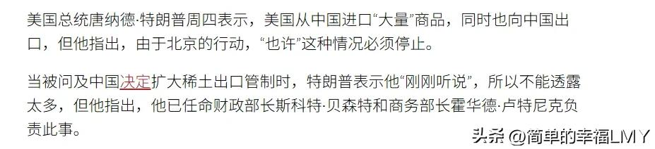 中国对美反制说到做到,商务部6条公告送进白宫,特朗普不敢再逞口舌之快! 10月9日,商务部6条稀土出口管制公告同步送达白宫,瞬间让此前动辄口出狂言的特朗普没了往日气焰。面对追问,他一改常态,只含糊表示“刚收到消息,不便多言”。 随即匆匆指派商务部长卢特尼克与财政部长贝森特接手处理,往日的嚣张气焰荡然无存。这副审慎模样,可不像是特朗普的风格。要知道,他向来习惯用强硬言辞造势,这次却突然收敛锋芒,说到底还是怕逞口舌之快误了大事。 中方这6条公告招招精准,全打在美国的“软肋”上,真要是说错话,只会让美国在后续谈判中陷入更被动的境地,这种赔本买卖,精明的特朗普怎会做? 谁都记得,上个月美国突然扩大出口管制范围时的嚣张。 当时中方就明确表态,直指美方举动“极其恶劣”,要求立即纠正,还撂下狠话“必将采取必要措施捍卫中企权益”。那时或许还有人怀疑中国只是“口头警告”,如今6条公告落地,全世界都看清了——中国的反制从不是空话,说到就必然做到。 这次的管制措施远比外界预想的更细致、更致命。不只是简单限制稀土原矿出口,连境外用中国稀土加工的物项、靠中国技术生产的相关产品,出口都得经过中方审批。 更关键的是,公告明确引入“最终用户和最终用途”双重申报,只要涉及14纳米及以下逻辑芯片、256层及以上存储芯片的生产,或是潜在军事用途,都得逐案审核,等于给稀土产业链装上了“精准闸门”。 这一下可掐住了美国的“七寸”。美国军工和半导体产业对中国稀土的依赖早已深入骨髓,F-35战斗机的耐高温材料、“宙斯盾”系统的雷达组件,还有高端芯片的制造,哪一样都离不了稀土。 之前美国还想靠投资本土企业摆脱依赖,7月国防部刚砸4亿美元入股MP公司成为最大股东,可没了中国的加工技术,那些稀土精矿不过是一堆没用的石头。 中方的出手绝非意气用事。商务部早有说明,稀土物项具有军民两用属性,实施管制本就是国际通行做法。这次强化管制,既是维护自身利益,也是履行防扩散的国际义务,有理有据,让美方挑不出半点错处。 反观美国,一边靠中国稀土支撑高端制造,一边又动辄挥舞制裁大棒,这种“又要又要”的双标行径本就站不住脚。之前4月中方初次实施管制时,美国企业就已尝到苦头,天和磁材等企业的订单交付延迟、销量下滑,如今管制升级,美国产业链面临的压力只会倍增。 特朗普指派两位部长出面,看似是“专业人办专业事”,实则暴露了美国的手足无措。他们很清楚,稀土产业链的优势在中国手里,短期根本找不到替代方案。想施压? 中方刚用行动证明了反制实力;想谈判?又怕被中方拿捏住把柄。这种进退两难的处境,让特朗普只能先收起锋芒,让手下人先探探路。 其实从A股市场的反应也能看出端倪。公告发布当天,金力永磁、北方稀土等稀土板块个股集体上涨,半导体板块也随之拉升,这背后是市场对中国稀土话语权的认可。 中国早已不是被动应对的角色,而是能主动掌控节奏,用合规手段维护核心利益的贸易强国。美国该明白,靠单边制裁施压的时代早就过去了。 中方这次的反制,既是对美方此前行为的回应,更是一次明确的警示:别把中国的克制当软弱,触及核心利益,必然会迎来对等反击。稀土只是一个缩影,在更多中国拥有优势的领域,美国的霸权逻辑都将失灵。 特朗普的收敛,或许是个信号,说明美方终于开始正视中国的反制实力。但这远远不够,若真想解决问题,光靠换两个人出面可不行,得先放下霸权思维,停止动辄挥舞制裁大棒的行径。 中国的态度始终明确:愿意平等对话,但绝不接受胁迫。这6条公告就是最好的证明,说到做到的反制里,藏着的是维护自身利益的坚定底气。特朗普要是还拎不清,下次面对的,可能就不只是收敛锋芒那么简单了。