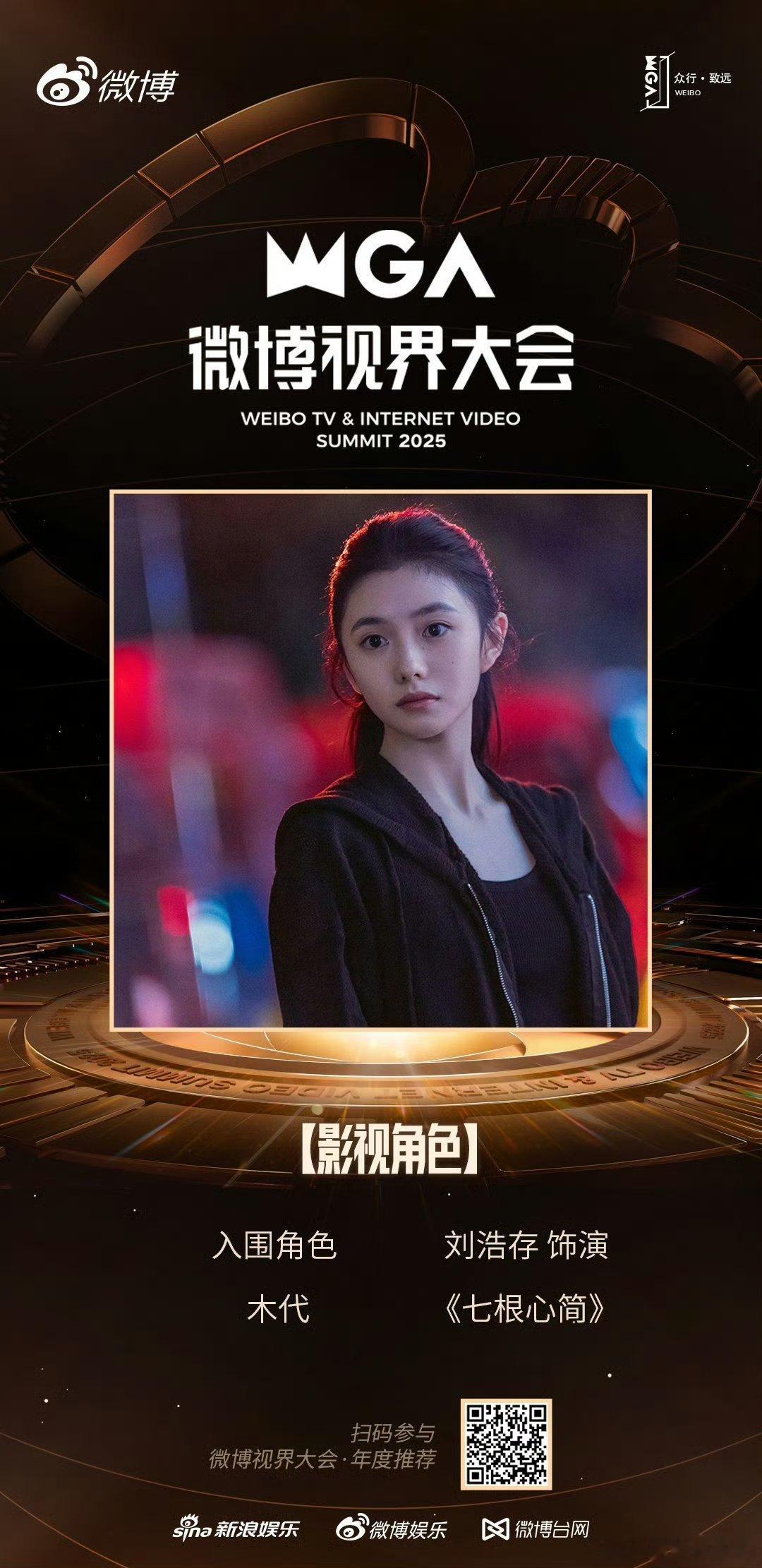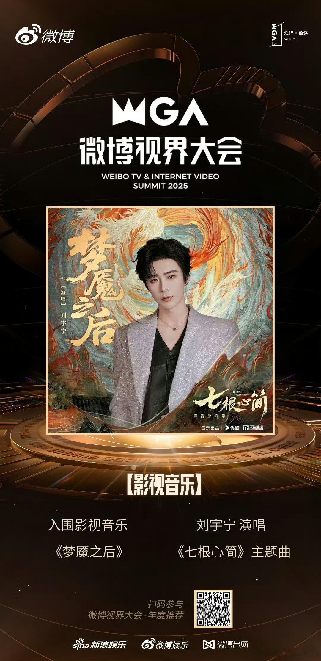《七根心简》剧集和刘浩存、宋威龙、敖瑞鹏单人角色,韧代cp,刘宇宁献唱ost《梦魇之后》,原著皆入围微博视界大会年度推荐啦!