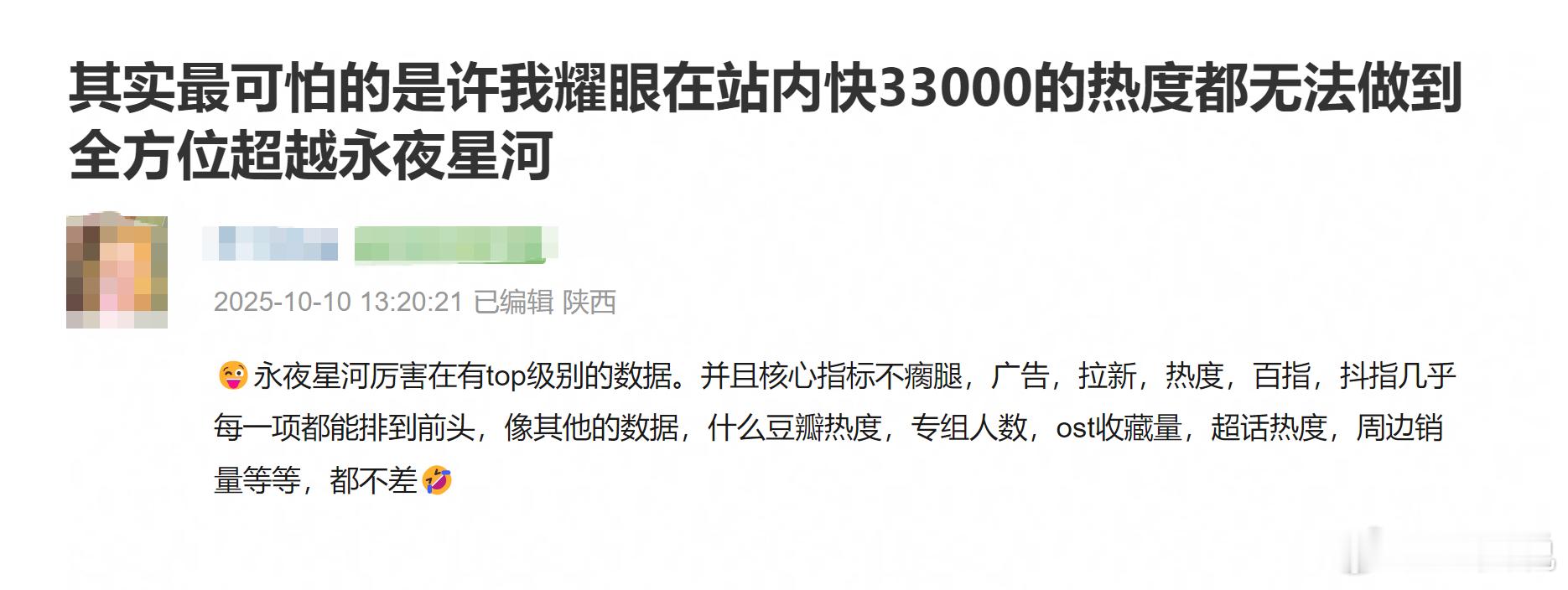 网友评价瀑剧《许我耀眼》无法超越《永夜星河》