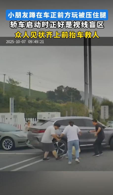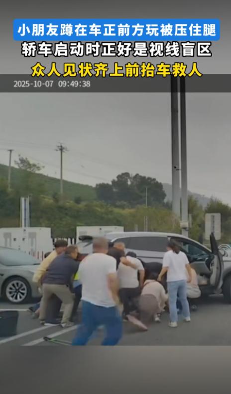 悲剧还是发生了!10月7日,浙江湖州,一男子启动车辆时,没有发现蹲在车前玩耍的女孩,而女孩也没有听到车辆启动的声音,最终,男子开车将女孩推倒在地,随后又压在车底!周围的人听到动静后立马抬车救人。网友:家长怎么看的孩子! 那天早晨,吴先生刚驶进停车场,他的车子还没有完全停稳,就看到一辆车已经启动,正在缓慢驶出车位。 然而这辆车的司机显然没注意到,车前有一个小女孩正蹲在地上玩耍,小女孩似乎完全沉浸在自己的世界里,没有意识到车辆即将起步的危险。 吴先生立马反应过来,他急忙按响了喇叭,试图提醒司机注意,然而司机显然没有听到鸣笛声,或者根本没有意识到自己周围的危险,随着车速的加快,小女孩被撞倒在地,接着车轮直接压了过去。 一时间,停车场内一片混乱,吴先生看到这幕情形,心里一紧,立马停车下车冲向那辆车,四周也传来急促的脚步声,很多围观的人也迅速过来帮忙,大家合力抬车,拼尽全力将车子抬起来,终于将小女孩从车底拉了出来。 幸运的是,经过紧急处理后,小女孩并没有出现生命危险,只是脚部受伤,身体其他部位并没有大碍,看到女孩被救出来,大家都松了一口气,但这场悲剧的发生却仍旧给大家带来了极大的震撼和警觉。 在这一事件中,除了车辆司机的疏忽,家长的监管也受到了一定的质疑,有人在网络上评论说:“家长怎么能让孩子在车前玩耍?这种地方哪里适合孩子停留?” 的确,这场事故的背后不仅仅是司机没有注意周围的环境,家长的监管责任也不可忽视,我们可以想象,如果那小女孩的家长站在旁边,或许悲剧就不会发生。 事故的发生也给所有司机提了个醒,很多时候,大家开车时过于专注于眼前的路况,却忽略了车辆周围的安全检查。 我们在启动车辆前,应当绕车检查,这样不仅能确保车内设备正常,也能及时发现潜在的安全隐患,尤其是周围是否有玩耍的小朋友,虽然车主可能会觉得车子已经没有问题,但细心检查一次会避免不必要的事故。 节假日期间,车流量大,路上难免有更多的孩子出现在人群中,驾驶员们在此时特别需要保持高度警觉,不仅要观察前方路况,还要环视车周围,确保没有意外情况。 而一旦发现附近有儿童,及时停车并确认他们安全,甚至主动呼喊让孩子远离危险地带,这些小小的举动可能就能避免一场悲剧。 但这场悲剧的发生给社会敲响了警钟,我们不能忽视交通安全教育的重要性,除了交通法规的普及,家长在生活中也应当加强对孩子的安全教育。 尤其是在车多的地方,孩子往往缺乏判断危险的能力,家长不仅要提醒孩子遵守交通规则,还要时刻保持警觉,确保孩子远离车辆,无论是停车场还是街道,任何地方都有可能成为意外的发生地。 从这起事件中我们看到,公众的集体反应是及时且充满人情味的,虽然事故发生得非常突然,但好心人立刻上前帮助,迅速将女孩救出,并在第一时间拨打了急救电话,这种集体行动也显示了人们对生命的关心和无私帮助的精神。 交通安全是每个人的责任,不仅仅是司机的责任,社会上的每一位成员都应该对交通安全有所关注。 对于这件事情,大家有什么看法? 信息来源:《小朋友蹲在车正前方玩被压住腿,轿车启动时正好是视线盲区》蓬勃新闻