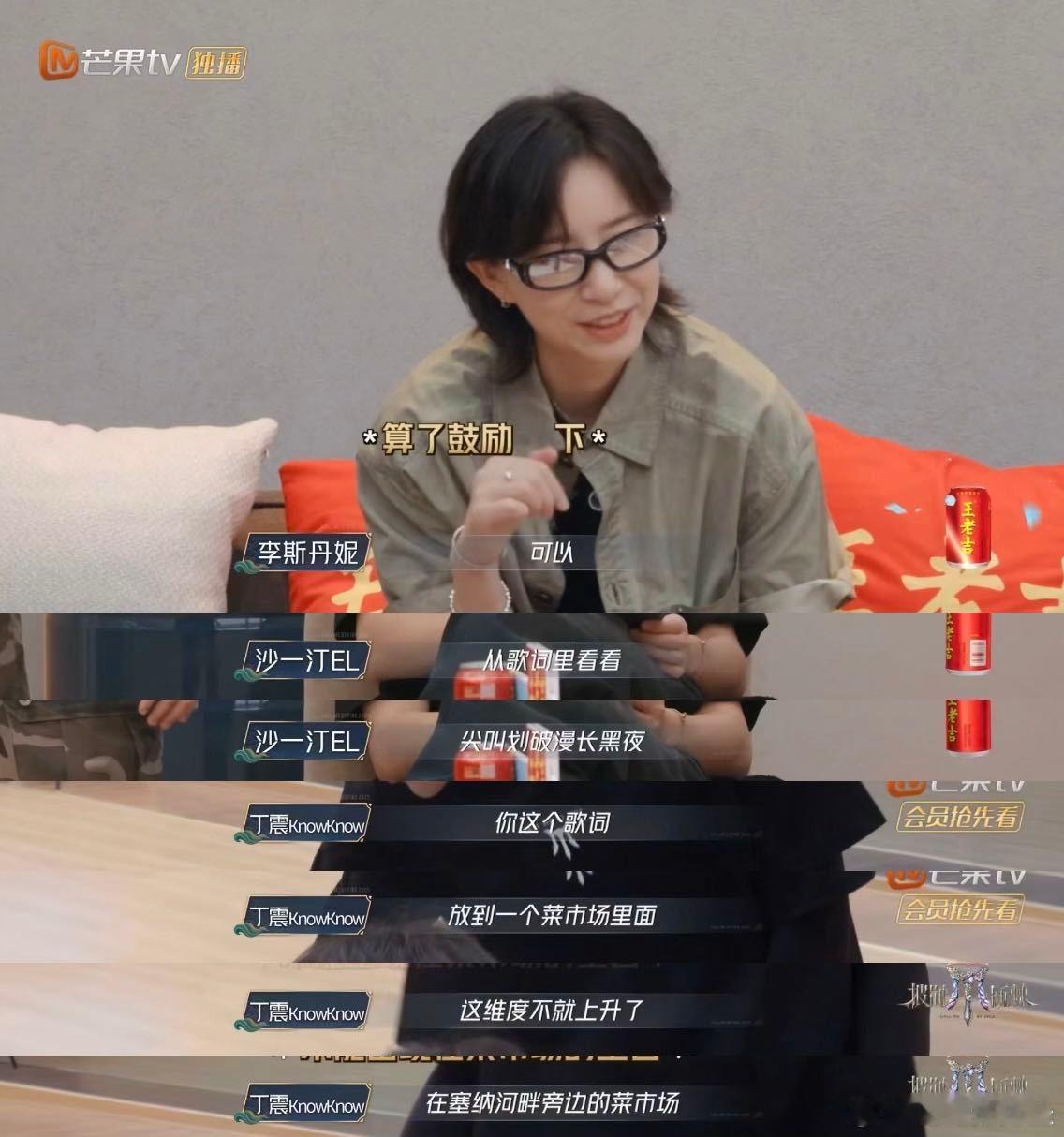 李斯丹妮 我吊个直升机下来买菜李斯丹妮和哥哥们商量舞台创意,丁震说要吊直升机下来买菜,这操作把李斯丹妮惊得不行,这脑洞绝了!