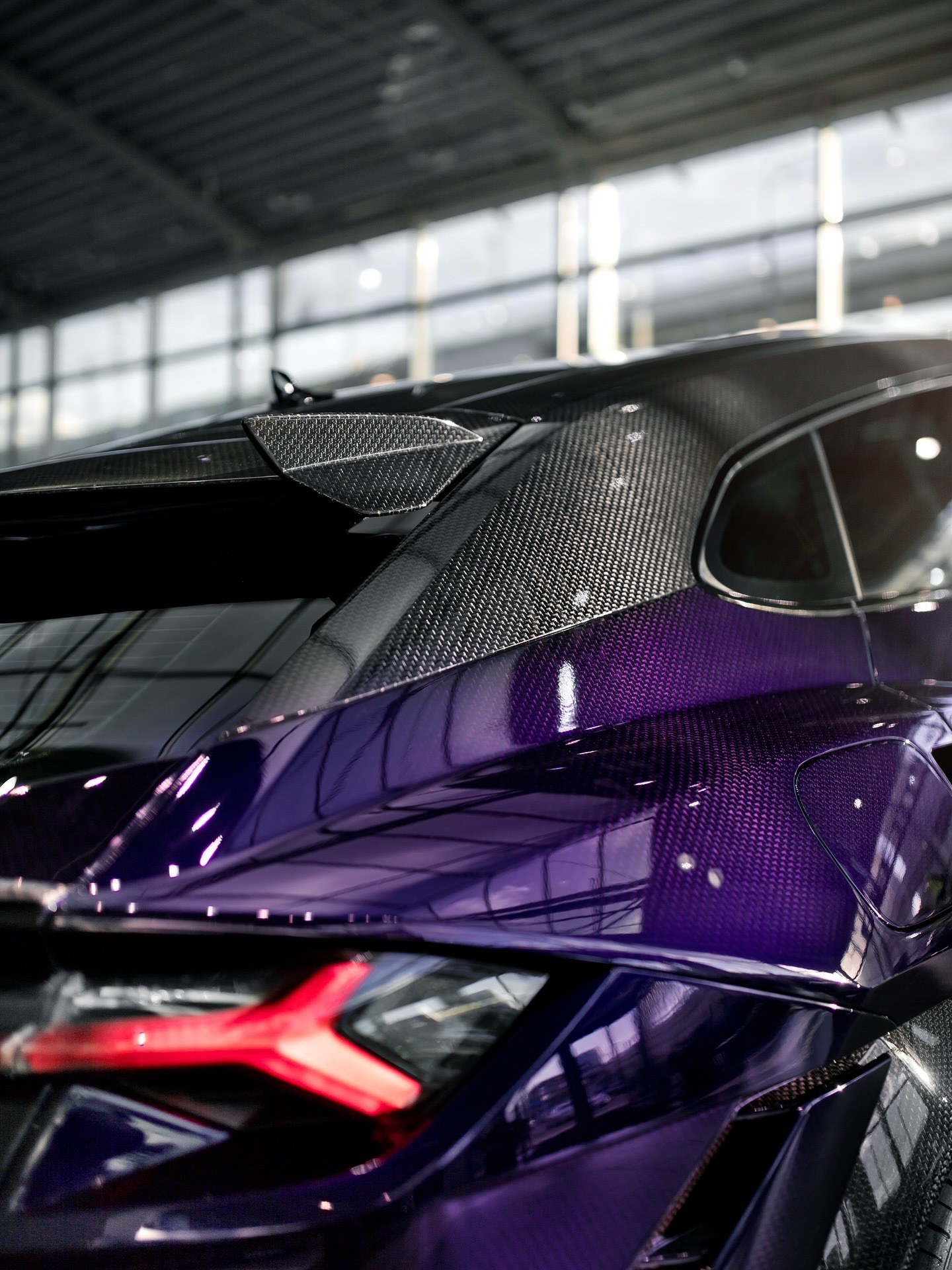 专属隐身碳纤维紫色,配以经典灰色碳纤维细节。每辆车都是独一无二的 👌