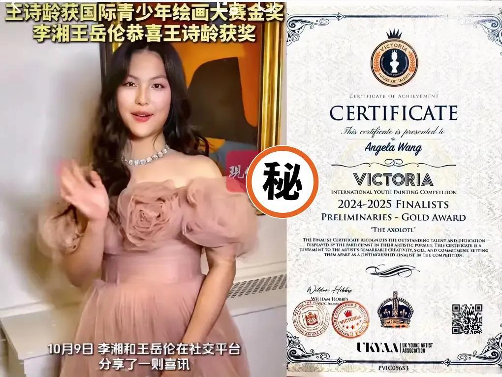 一夜过去, 李湘母女口碑大反转, 不是因为道歉了,而是王诗龄拿到英国维多利亚国际青少年绘画大赛金奖。 这奖可不是随便拿的,全球青少年都能参赛,金奖作品还能进伦敦艺术大学展出,跟国际大师的作品同台亮相。 之前吐槽她们只懂炫富的人,这下该闭嘴了。 李湘的“富养”从来不是只砸钱,而是带着王诗龄看遍世界博物馆,从兴趣里挖出真天赋。 比起碎嘴子议论,实打实的成绩才是底气。 原来真正的精神富养,是给孩子机会发光,让作品替自己说话。 你喜欢王诗龄吗?李湘育儿观念