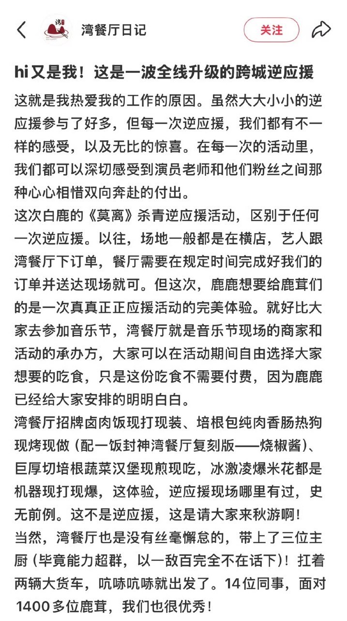 白鹿[超话]白鹿莫离杀青现做逆应援餐白鹿逆应援餐现场做咱就是说真的好用心啊![爱慕][爱慕][爱慕]