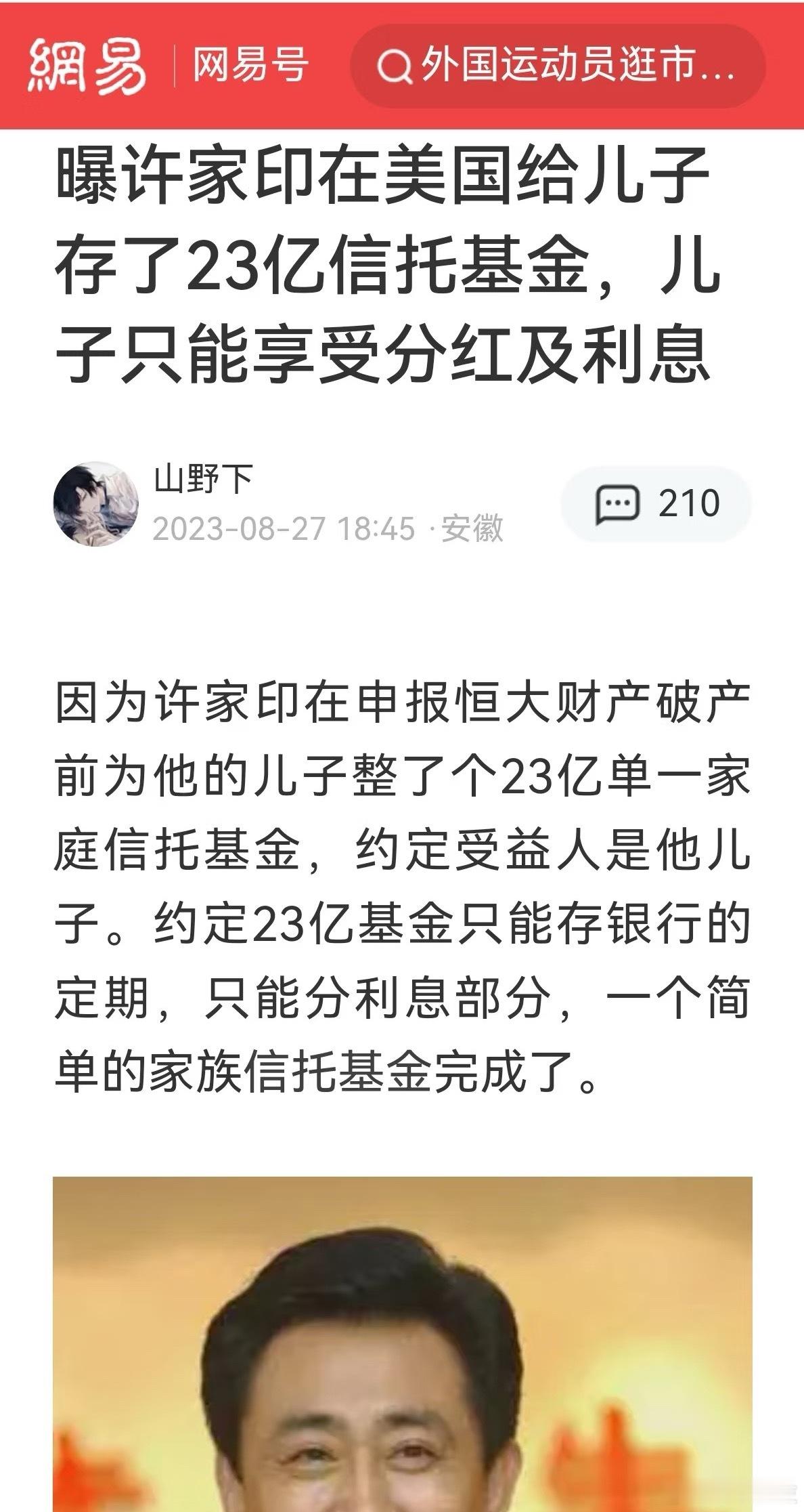 许家印的23亿美元藏不住了这个信托被击穿是早晚的事,不义之财,不积德早晚被败光。还是要加强监管,否则许皮带之流不会绝的。