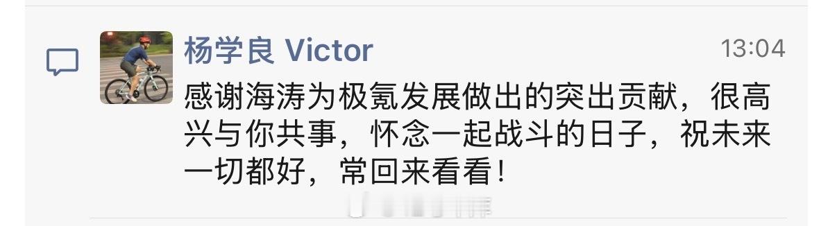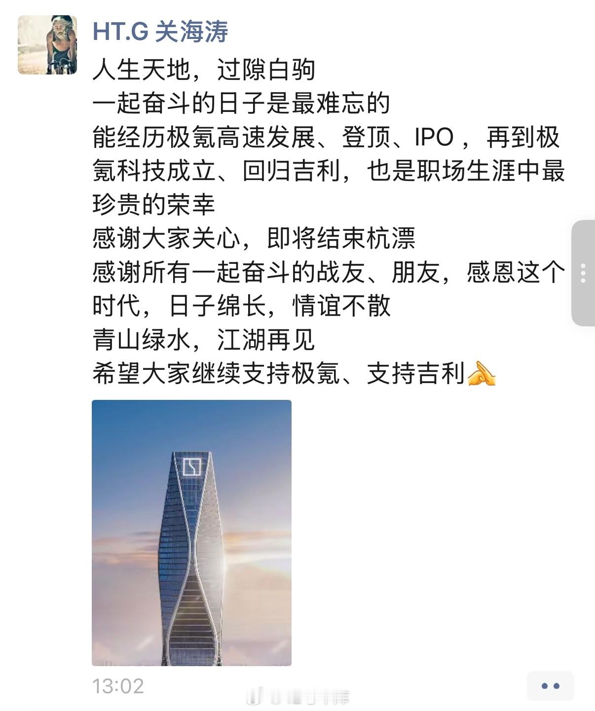 感谢海涛为极氪发展做出的突出贡献,很高兴与你共事,怀念一起战斗的日子,祝未来一切都好,常回来看看!