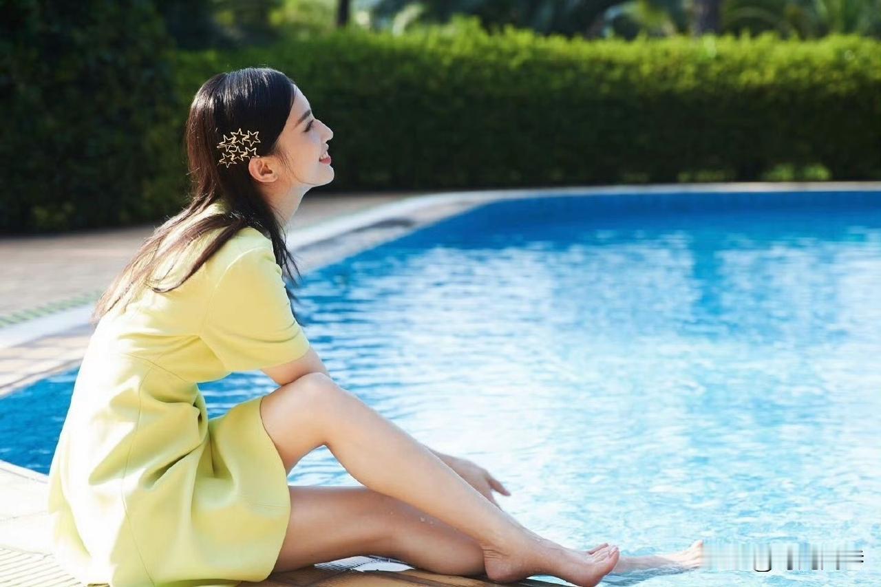 泳池边的黄圣依。微闭双眼享受着夏日的清凉!
