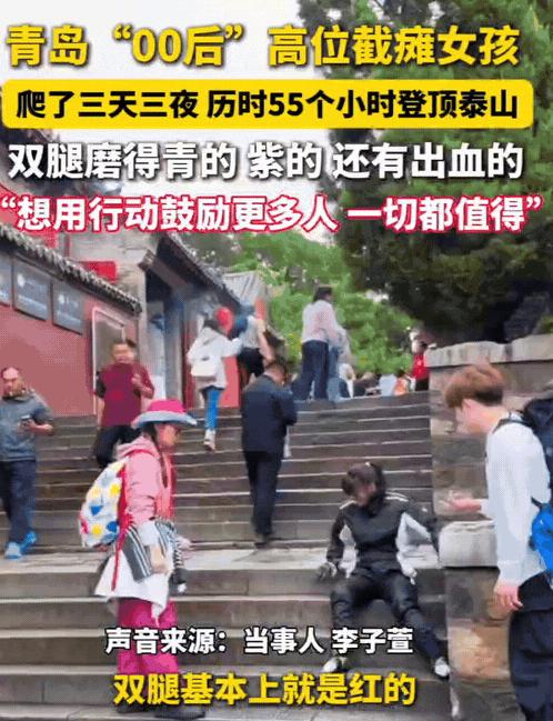 “这个女孩的毅力强得可怕!”国庆假期,青岛00后女孩李子萱用三天三夜的时间干了一件轰动全网的大事,她拖着残疾的双腿历时55个小时成功登顶泰山!她也因此成为国内首位徒手爬上泰山的高位截瘫女孩! 五十五小时,用双手登上泰山,这一幕引起了无数人点赞! 10月5日清晨,泰山脚下的空气还带着一丝凉意,人群中,一辆特别的轮椅格外引人注目。 坐在轮椅上的女孩名叫李子萱,00后,来自青岛,一名高位截瘫的残障者。 她戴着一顶红色的棒球帽,脸上写满了坚定的神情。 她要挑战的,是几乎所有人都觉得“几乎不可能”的事——靠自己的力量,一阶一阶地爬上泰山。 今年7月,李子萱第一次尝试挑战泰山。那时的她和姐姐一起,没什么经验,也没有太多装备。 她只是带了副旧手套、一条护膝和一腔热血。三天三夜里,她几乎全靠双手一点一点往上爬。 手套早被磨破,掌心的皮也裂开了,渗出的血混着灰尘,看着让人心疼。 裤子膝盖的位置也早就磨穿,布料贴在皮肤上,被汗和血糊成一块。 最后,她在中天门附近停了下来。 那一刻,她眼里有遗憾,也有不甘。 可回到青岛后,她没有放弃。那次失败,反而让她更清楚自己要做什么。她说:“我不想只到一半就回头,我想真真切切地到山顶,看一眼那块碑。”于是,她开始系统训练手臂力量,还特地改良了装备。 10月5日,她第二次出发。 这次,她带的东西足足有三四十斤重——小板车、防磨手套、护具、干粮、水,还有备用的绑带和药膏。 小板车是朋友帮她改的,轮子更结实,底部加了防滑垫,平路上她靠板车滑行,遇到台阶就自己下车,用双手撑地往上爬。 石阶被岁月磨得光滑,很多台阶比她身体还高,她就靠着朋友的协助和自己的力量,一次次把自己往上推。 爬的第一天,阳光正烈,掌心磨出了水泡。 朋友劝她休息,她只是笑笑,说:“我来这儿,不是为了半途而废。”到夜里,山风呼啸,她靠在朋友递来的毯子上稍微合了下眼。第二天清晨,又是新的征程。 她的手臂已经发酸,指关节都肿了,但她咬着牙,不肯退。 到了10月7日晚,历经整整55个小时,李子萱终于登上南天门。 那一刻,她几乎是用尽全身的力气,撑着地面挪上最后一级台阶。 山顶的风吹乱了她的头发,眼泪顺着脸颊滑下。她抬头望着“登泰山而小天下”的碑刻,激动地说:“我真的做到了!” 身边的朋友为她鼓掌、拥抱,山顶的游客也自发地围上来,有人拿出手机为她拍照,有人悄悄红了眼眶。李子萱笑着说:“不是让大家都来爬泰山,我只是想告诉更多像我一样的人——坐在轮椅上,也能做很多事。也能活出属于自己的高山。” 那一刻,泰山的夜色中,她瘦小的身影显得格外挺拔。 来源:大众新闻