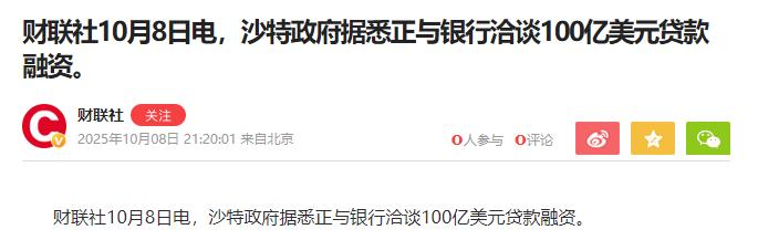 向来以土豪形象示人的沙特,如今居然也要开口借钱了! 10月8日,沙特政府正式对外宣布,正在和多家国际大银行商量,计划筹集100亿美元资金。这消息一出来,不少人都觉得意外——毕竟在大家印象里,沙特靠着卖石油就能坐收渔利,怎么会突然需要对外举债呢? 这事儿其实没那么简单,背后既有短期手头紧的现实问题,更有长期转型的深层考量,得一层层掰开来看才明白。最绕不开的,就是沙特经济对石油的“依赖症”。 根据沙特财政部最新的年度财政报告,石油收入占国家财政总收入的近60%,就像家里只靠一棵摇钱树过日子,一旦这棵树结的果子少了,全家都得受影响。 而国际能源署(IEA)的数据显示,从2024年到2025年上半年,因为全球能源需求放缓,加上太阳能、风能这些替代能源发展得越来越快,国际油价跌了大约12%。这一下就导致沙特石油出口收入少了80亿美元左右,原本有盈余的财政账本,一下子变成了小幅赤字。 虽然沙特有个规模不小的主权财富基金,但这笔钱主要是用来投长期项目的,就像定期存款不能随便提前取,短期内没法拿来填补财政缺口。 与此同时,沙特正在全力推进的“2030愿景”改革计划,就是个“吞金兽”。这个计划的核心是想摆脱对石油的依赖,把经济搞多元化,涉及新能源、旅游业、科技产业等好多个领域。 其中,最出名的NEOM未来城项目,原本计划一期投资就超过5000亿美元,结果因为工程复杂、进度滞后,成本已经飙升到更惊人的数字,还传出了裁员和推迟工期的消息。 除此之外,红海旅游开发、可再生能源基地建设等项目也在同步花钱。 沙特中央银行的数据显示,2025年7月的外汇储备约合4460亿美元(16653亿里亚尔),和两年前相比确实有所下降。这么多项目同时开工,光靠自有资金难免捉襟见肘,适当借点钱就成了缓解压力的实在办法。 而这次借钱,也是为了“优化债务”,把账算得更精明。沙特财政部官员在声明里提到,这笔100亿美元主要用来还一部分快到期的旧债,顺便补充点短期流动资金。 截至2024年底,沙特政府债务占GDP的比例大约是32%,这个数字在国际上算安全的,但通过“借新还旧”能把融资成本降下来。 这次谈合作的都是汇丰、花旗这样的国际大银行,借款利率会参照美国国债收益率来定,预计能控制在3%以内,整体债务压力还是可控的,还算不上拆东墙补西墙的无奈之举。 说到底,沙特这次借钱不是遇到了财政危机,而是在经济转型关键期的一次理性算计。而这种“家大业大”也得精打细算的做法,反而体现了沙特不想只靠石油吃饭、认真推动改革的决心。 毕竟要从“石油土豪”变成真正的多元化经济体,过程中难免要过几道“钱关”,这次借钱就是迈过其中一道坎的务实选择。