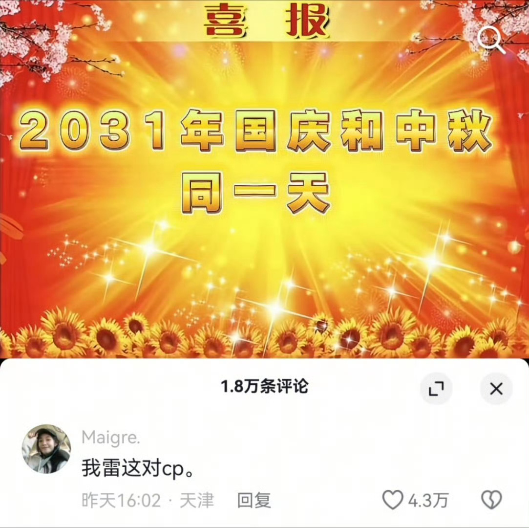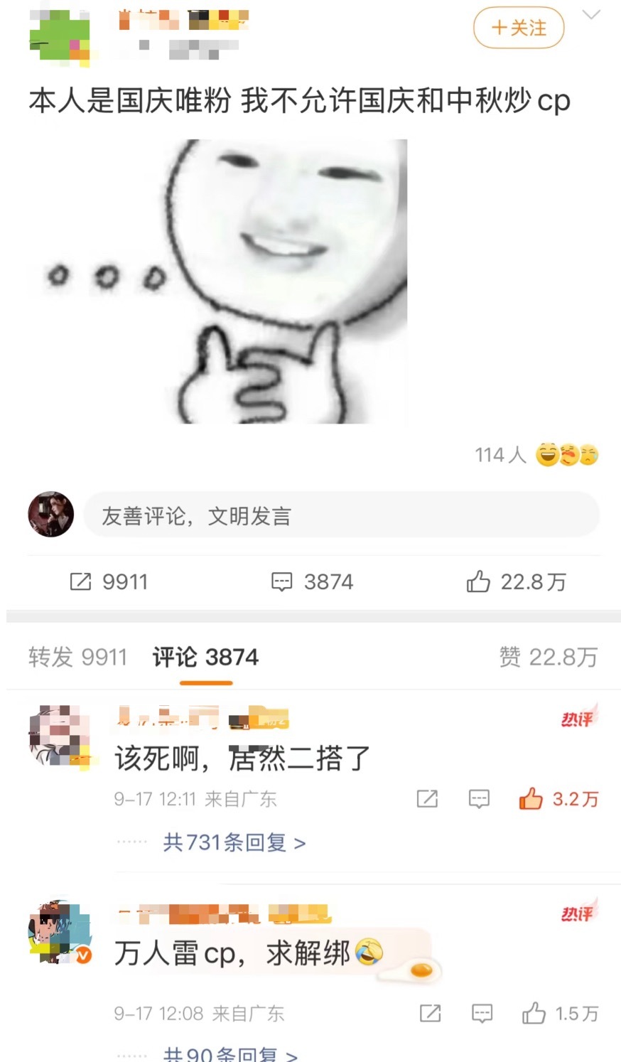 唯一一对0个CP粉的CP出现了..评论里都在求国庆假期和中秋假期解绑的..