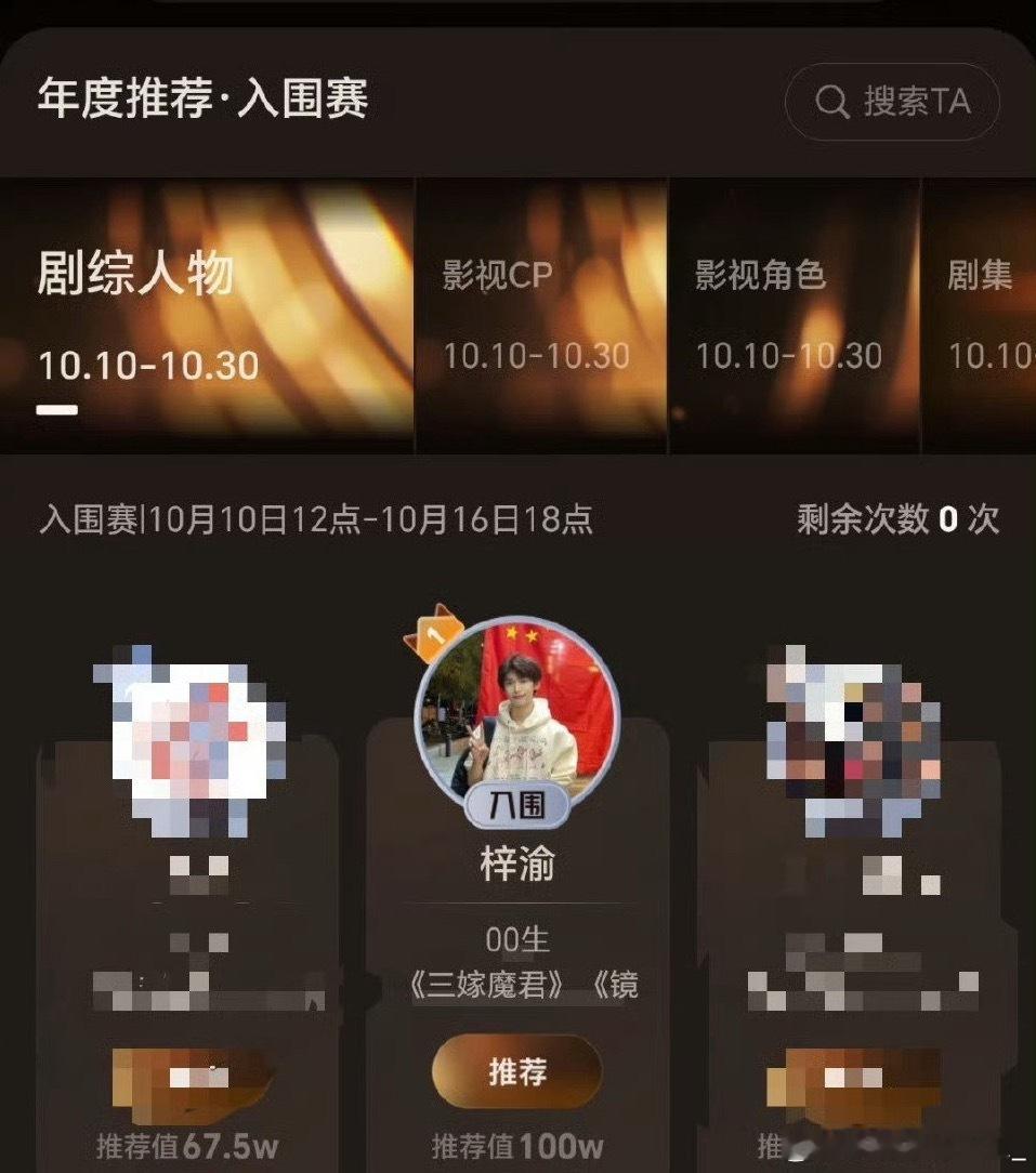 梓渝首个剧综人物推荐值已经破100万了,真快啊,散粉随便投投就直接100万了[泪奔][泪奔]