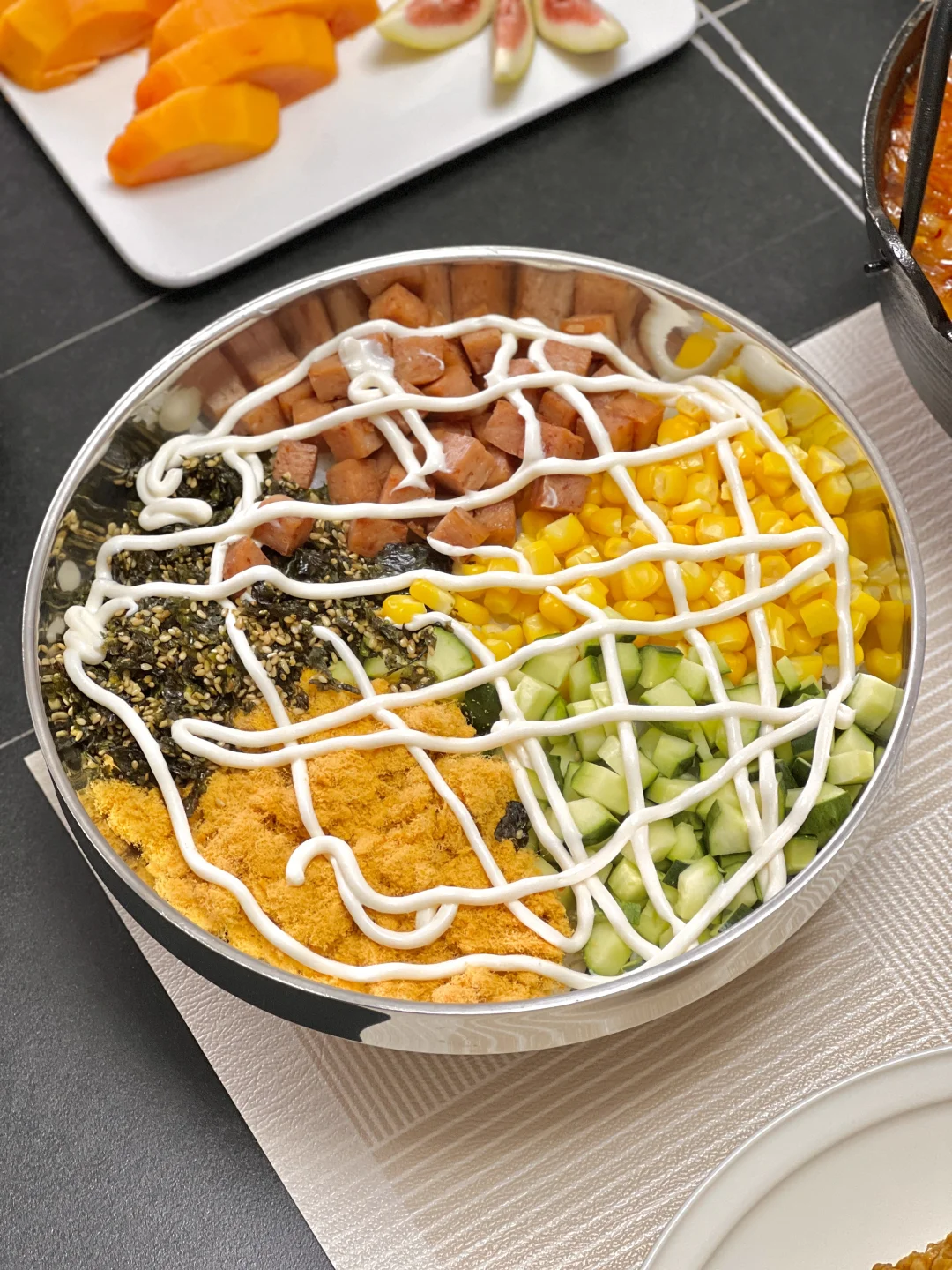 北京这两天一下子冷了啊,不给人任何缓冲的余地[笑哭R]必须吃点暖和的才舒服,做一锅酸酸辣辣的泡菜汤,一口下肚真得劲[派对R]爱吃炸鸡的宝子们可以试试这个做法,有点韩式炸鸡店那味儿了~鱿鱼除了配米饭,用来夹热腾腾的大馒头也是很香的,孜然的味道太迷人啦![赞R] 【蜂蜜脆皮炸鸡】 【海苔肉松拌饭】 【五花肉泡菜汤】 【辣炒鱿鱼】