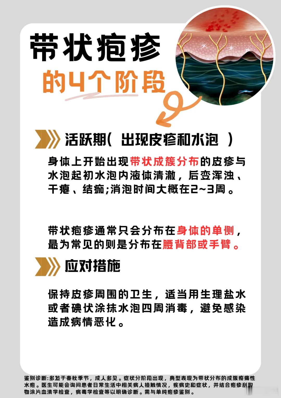 如果你或者家人有高血压、免疫力偏低之类,得带状疱疹的风险越高,痛感越强,后遗症也越难熬…所以千万要警惕!一旦发现身体单侧出现刺痛感、起红疹水泡,别犹豫立即去看看!早期干预太重要了!