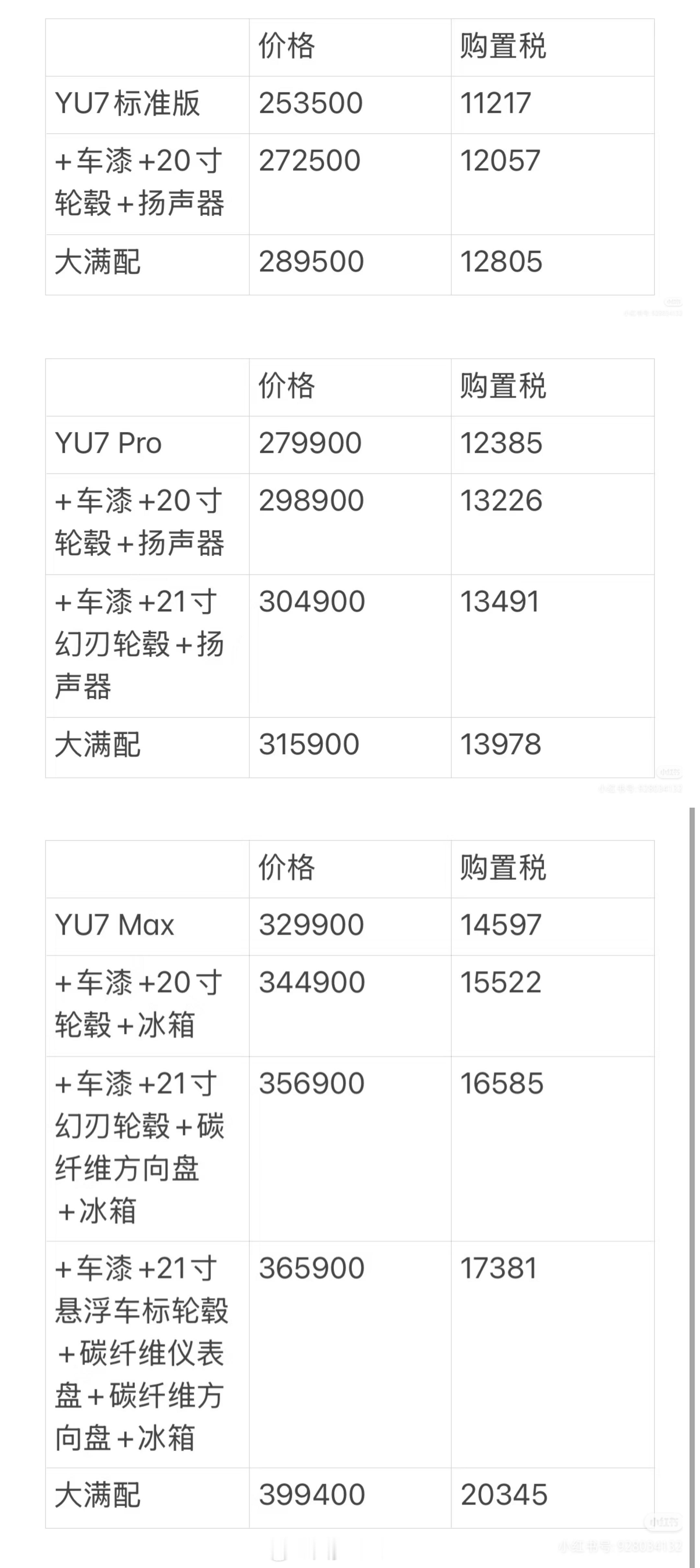 小米YU7要交多少大家可以参考 图二,应该还是比较清晰,最少也要大概1.1万
