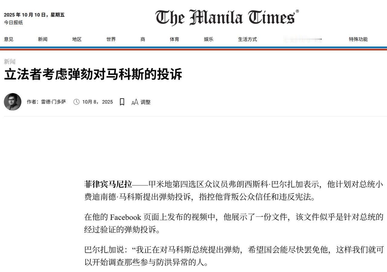 马科斯阵营内讧,菲总统怎么也没料到,弹劾自己的第一枪来自背后 菲律宾总统小费迪南德·马科斯最近日子有点难过。原本以为外面的反对派才是劲敌,没想到,真正让他头疼的,居然是自己人“捅刀子”。 这回,弹劾总统的第一枪不是别人,正是他一直倚重的阵营里的人开出来的。政坛风云突变,马科斯还没反应过来,背后已经起了大火。 说到这次弹劾案,主角是众议员巴尔扎加。他不声不响地把弹劾动议提了上来,理由直指防洪工程腐败案,指控马科斯总统包庇家族成员,像前众议长罗穆尔德兹,还有自己的儿子都牵涉其中。 按巴尔扎加的说法,马科斯不仅没尽到总统职责,反而“带头违宪”,这不是明摆着给对手递刀子吗? 不过,真要说这弹劾能不能成,基本没戏。菲律宾的法律门槛可不低,光众议院就得三分之一的人同意,参议院还得三分之二赞成。 马科斯自己人还在国会里占着大头,想让弹劾通过,难度堪比大象上树。 可问题的关键不在这儿。巴尔扎加这位“老粉”突然反水,直接把执政联盟的裂缝暴露在阳光下,哪怕弹劾案最后胎死腹中,这一枪都足够让局势翻天。 政坛里,最怕的不是敌人发难,而是队友反水。弹劾案一出,反对派别提多高兴了,尤其是杜特尔特家族。 这事给他们送了一份大礼,平时想找茬还得挖半天材料,现在总算有了现成的理由。马科斯阵营的“家丑”一曝光,反对派话题、舆论、攻势,分分钟轮番上阵。 其实,这场“背后一枪”并不是突然冒出来的。早在弹劾前,马科斯家里就已经不消停。前头,马科斯的亲姐姐伊梅·马科斯就和他闹翻了,直接倒向杜特尔特阵营。 原因很直接,不满马科斯把前总统杜特尔特送上国际刑事法院,还因为家里权力分配没谈拢。伊梅想给儿子谋个重要职位,结果没成,心里那点火气憋不住,干脆“跳槽”投靠对手。 这种家族内讧,菲律宾政坛并不稀奇。家族政治本来就像一锅大杂烩,讲的都是利益和分赃,谁拿到肥肉谁说了算。 可这回从姐姐到亲信,一连串的倒戈,说明马科斯在平衡利益、处理盟友关系上,的确出了大纰漏。 再说回巴尔扎加,原本是马科斯的“铁杆”,如今却选择开第一枪。他的动机也不难猜,想当众议长,结果落空,心里的不满可想而知。 菲律宾政客讲究的是“雨露均沾”,谁没吃到好处,转身就成对手。这种局面,其实就是权力分配没搞好,大家心气不顺,队伍自然难带。 说到底,马科斯的执政风格太过倚重家族和小圈子,忽视了对盟友的利益安抚。大局没把控住,关键岗位上摆不平,内部分歧自然就越来越深。 家族政治讲究的是表面团结,背地里各怀鬼胎,这次弹劾案不过是冰山一角,背后还有更多的“瓜”没爆出来。 这场内讧,最大的赢家要数杜特尔特家族。就在马科斯焦头烂额的时候,杜特尔特家族那边正好趁机发力。 前总统杜特尔特昏迷事件本就引发争议,副总统莎拉·杜特尔特早就指控当局程序不合法。现在又有腐败丑闻“添柴加火”,杜特尔特阵营如虎添翼,随时准备发动新一轮攻势。 民众情绪也开始发生微妙变化。腐败丑闻和高层内斗,让老百姓更不信任政府。 虽然国会看起来还是马科斯的人多,但实际支持在一点点消耗。民调里马科斯的支持率已经出现下滑迹象,大家对执政联盟的信心,早就不像之前那么铁板一块。 政局乱了,反对派就有了更多动作的空间。即便这次弹劾案难以通过,马科斯的阵营已经被撕开一道大口子。 联盟内斗、家族分裂,这些问题不解决,未来政坛还会有更多“地震”。反对派会继续找机会下手,马科斯想稳住局面,难度只会越来越大。 弹劾案虽未必能一锤定音,但它释放出来的信号足够强烈。菲律宾的家族政治和联盟结构,本身就像一盘散沙,权力分配一旦失衡,动荡就在所难免。 马科斯的困境给所有政客提了个醒,风雨欲来的时候,靠圈子、靠家族都不靠谱,只有把民心稳住、利益分好,才能安然无恙。 如今,菲律宾政坛的这场风暴才刚刚起步。背后那一枪,不仅打在了马科斯身上,更打在整个联盟政治的脆弱根基上。后面会如何收场,还得看马科斯能不能挺住这轮大考。