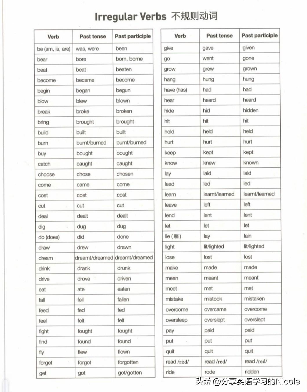 掌握动词过去式和过去分词,英语学习更轻松!📚💡高中阶段所有的不规则动词变化形式,先记住它们规则的按照规则的方式来做就OK