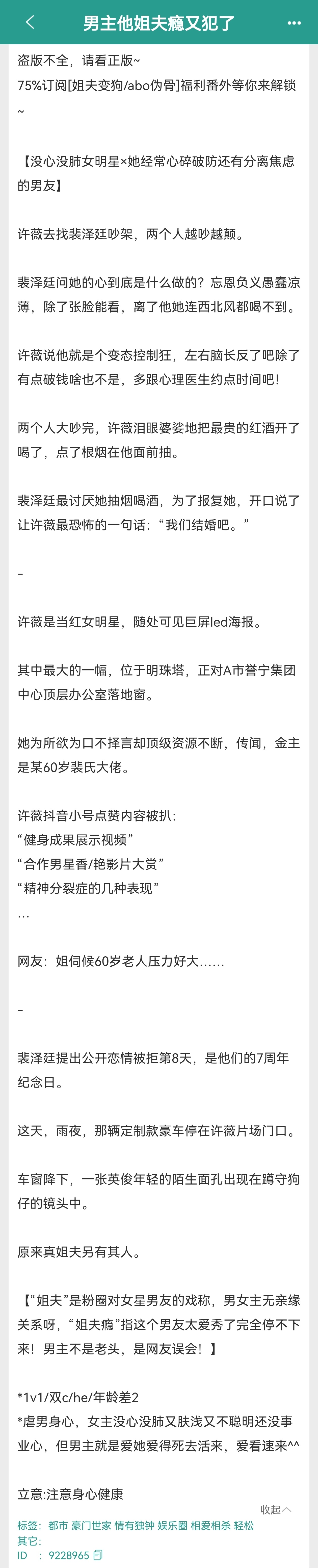 推文[超话]甜文单推《男主他姐夫瘾又犯了》作者:千松松已完结。没心没肺女明星