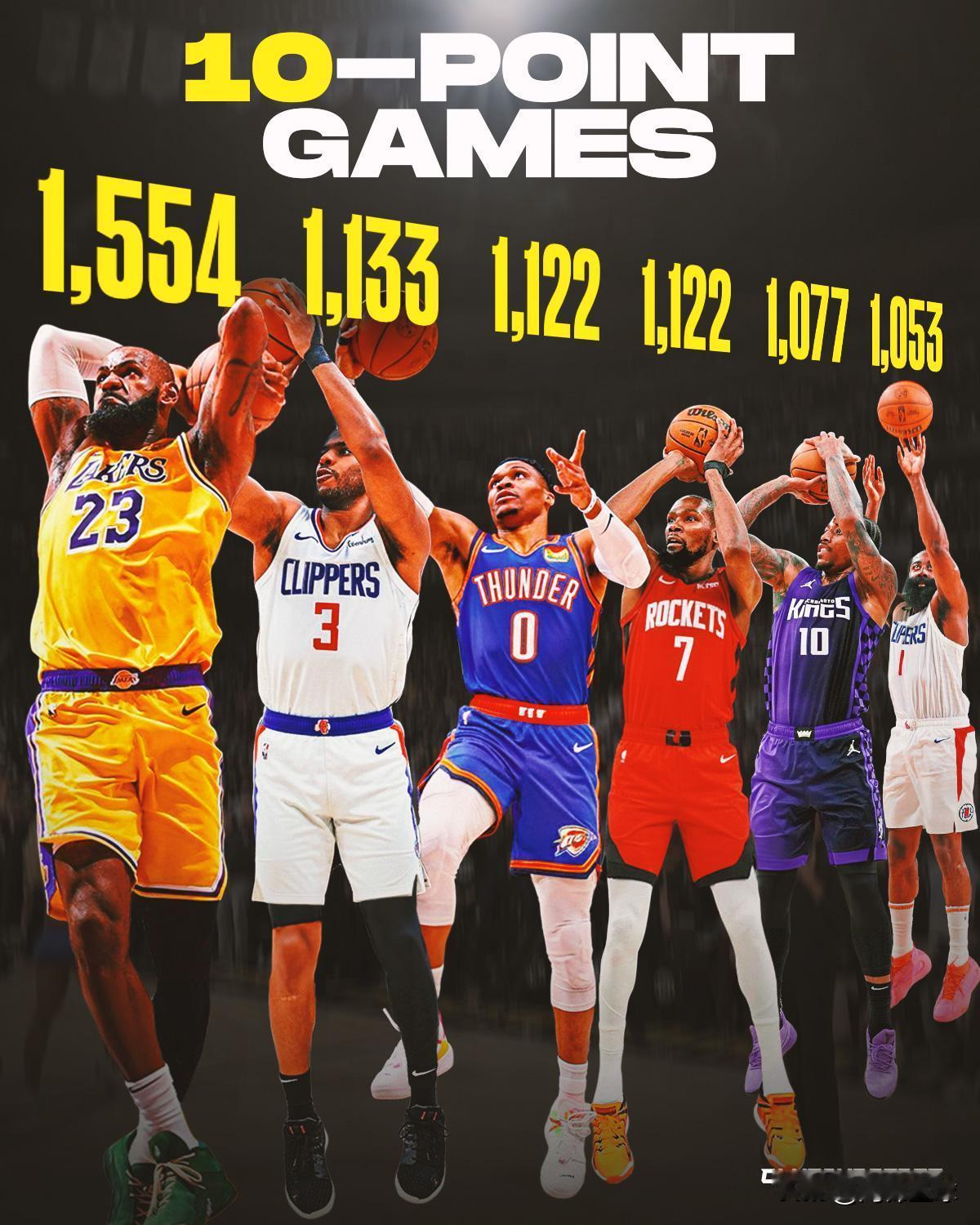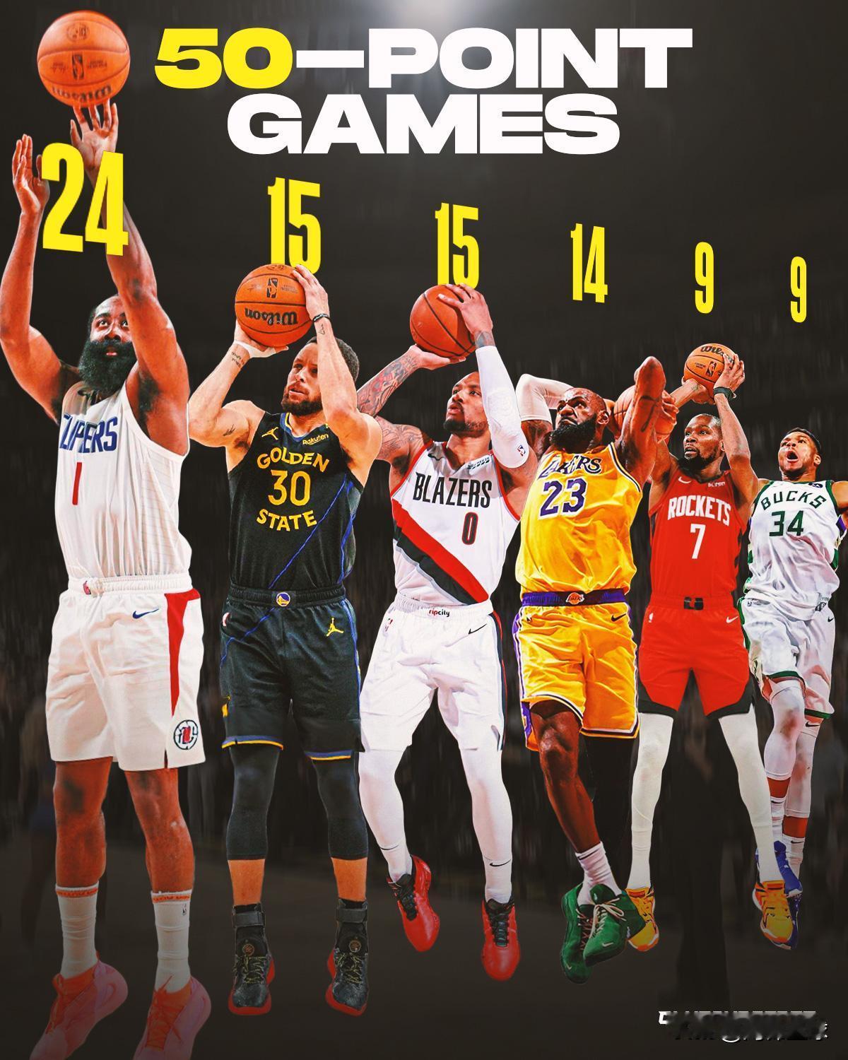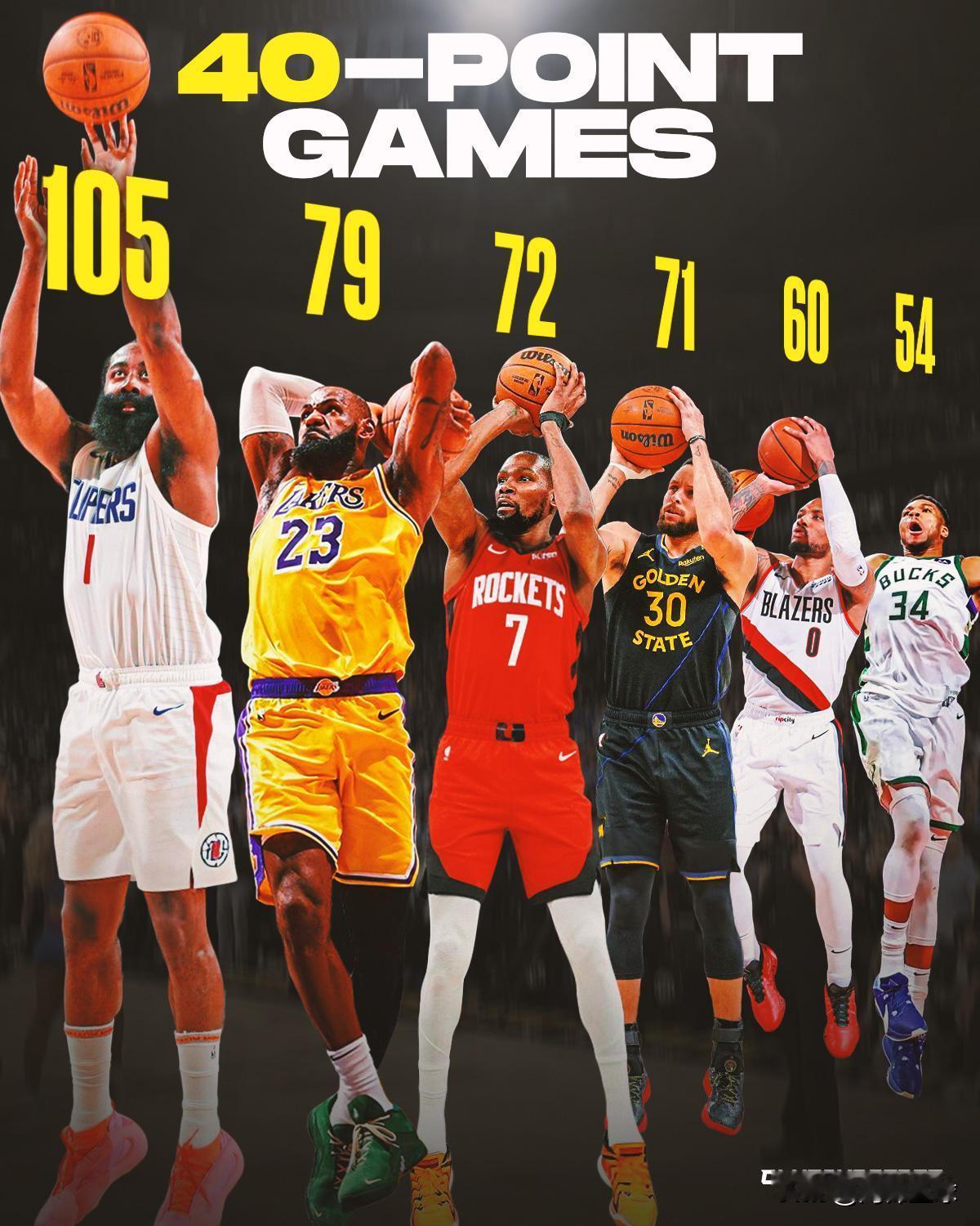 美媒:哈登老詹分别霸榜各分段得分场次排名! 刚刚,美媒体clutchpoints分享了一组图片,罗列了NBA现役球星职业生涯单场得分10+、20+,一直到70分+的场次排名。并配文:“这些得分高手把比赛变成高光集锦,得分在他们面前毫不费力,他们不断刷新得分记录,并反复定义伟大。你认为这份名单中谁最令人意外?” 这组数据中,詹姆斯霸榜了得分10+、20+和30+的场次数。而哈登则领衔了40+和50+的得分场次数,且在60+的得分场次上以微弱劣势落后于利拉德。70+得分场数分别是东契奇、布克、利拉德、恩比德和米切尔五人各一次。