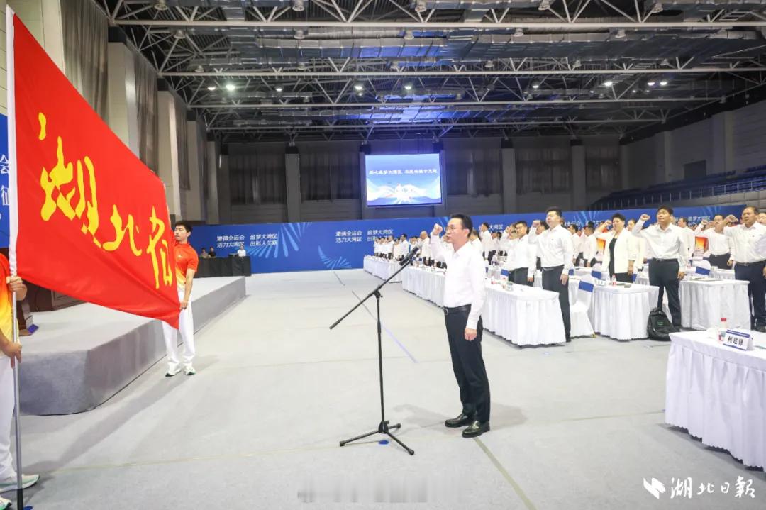 成立大会上,湖北体育健儿的铮铮誓言响彻全场。他们立志在粤港澳全运会舞台高扬荆楚旗帜,为湖北建成中部地区崛起重要战略支点贡献体育力量!