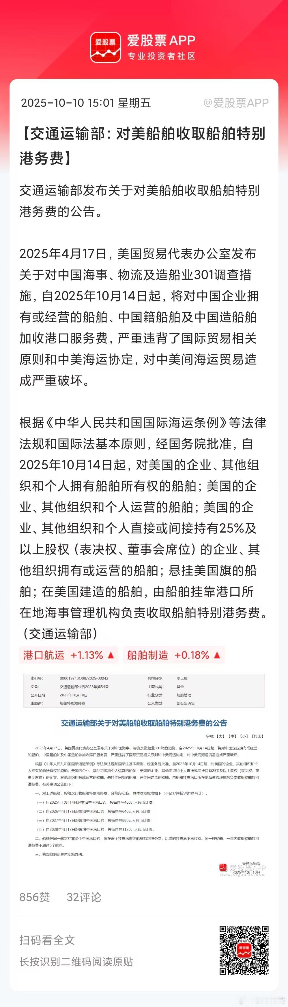 我们又反击了,对美船舶收取特别港务费。从稀土、锂电池、芯片(英伟达)、船舶停靠费,我们连续出招,以牙还牙!