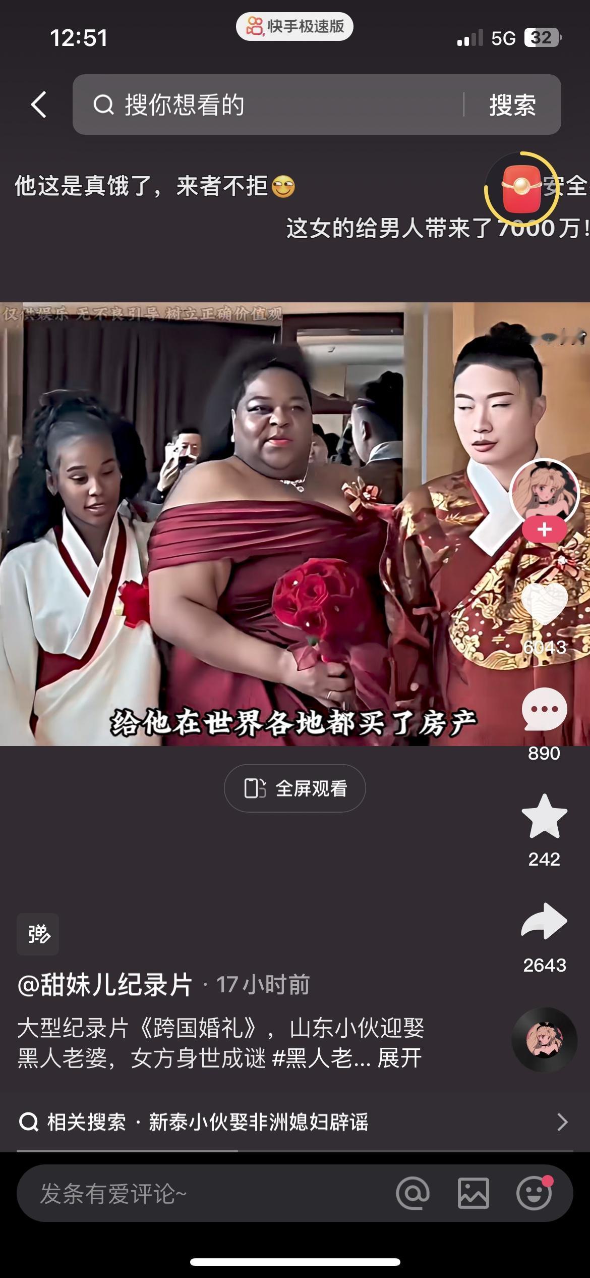 山东小伙娶47岁黑人新娘,陪嫁千万?新郎直播辟谣:她只是北京外教,我还回赠两车! 兄弟们,最近山东新泰这场跨国婚礼简直把全网看懵了!27岁小伙娶47岁黑人新娘,年龄差整整20岁,婚礼上新郎父母还被拍得愁眉苦脸,网友直接脑补出“豪门剧本”——说新娘是南非矿主女儿,陪嫁5000万英伟达股票、劳斯莱斯,连卡塔尔都有房产! 结果人家新郎直接拉着新娘开直播打脸了!澄清说新娘就是北京的英语外教,哪来的矿场?陪嫁确实有一套房和一辆车,但他自己也回赠了女方一套房、两辆车,俩人是在北京因兴趣相识,早就在朋友圈喊对方“小甜甜”官宣了!新娘还特意穿中式红袄、盖红盖头办婚礼,连12岁的儿子都当伴郎,跟新郎相处得特融洽!那些“千万嫁妆”全是网友瞎编的! 你觉得这20岁年龄差的跨国恋能长久吗?换作是你,会在意伴侣的年龄和肤色吗?评论区聊聊! 山东跨国婚礼 谣言辟谣 年龄差爱情 涉外婚姻 热点反转外籍娶媳妇 外籍来华结婚