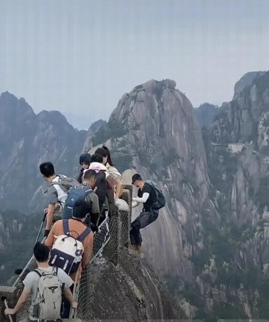 黄山以前到处是这种栏杆还没网,人多很容易碰下去,我说啥了吗
