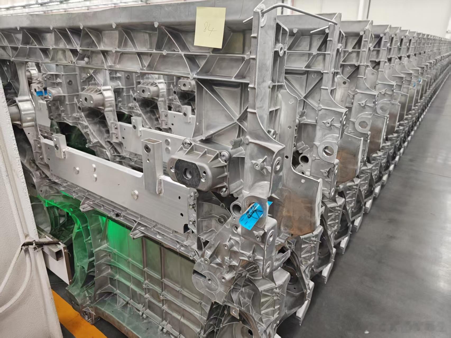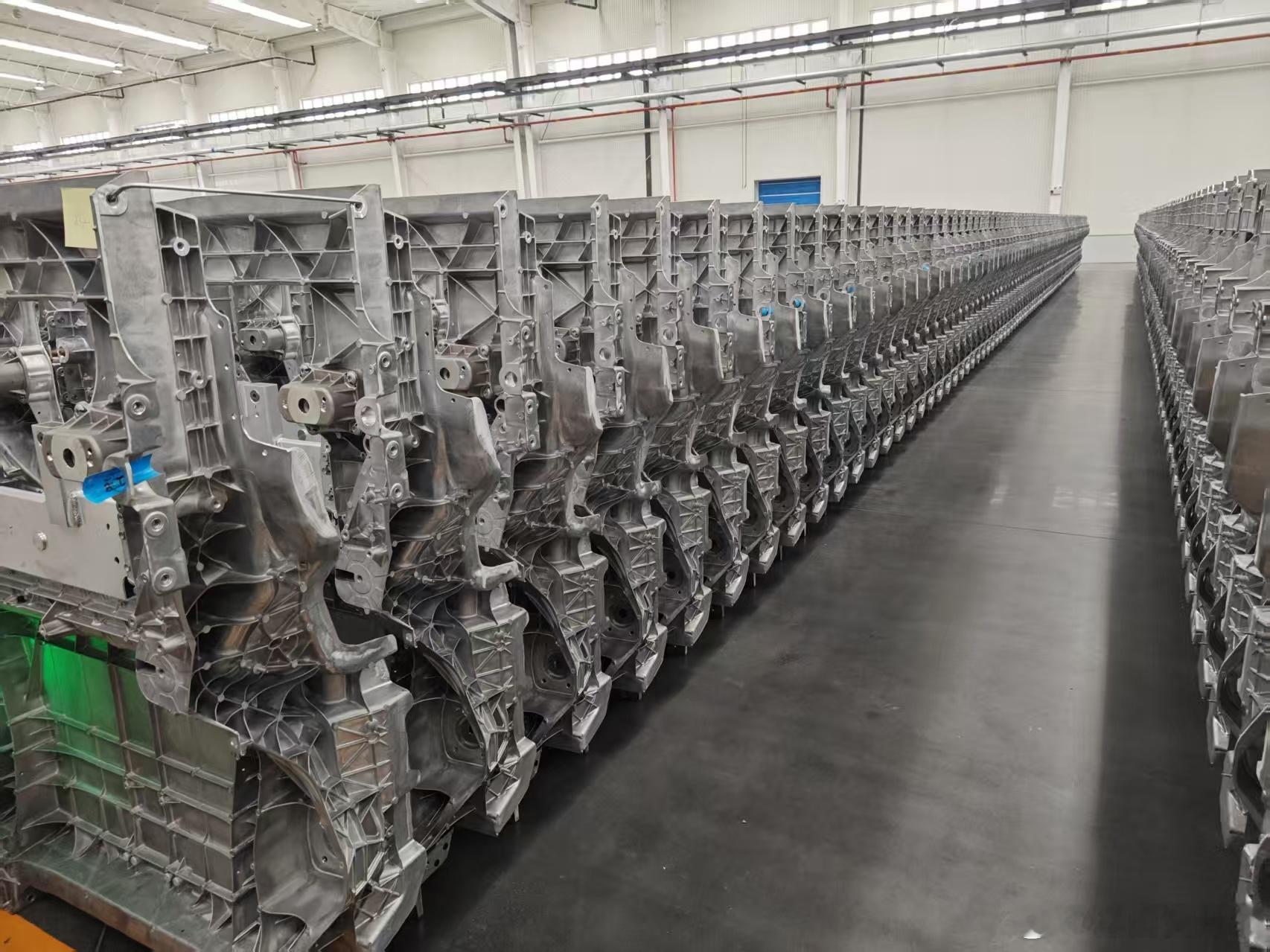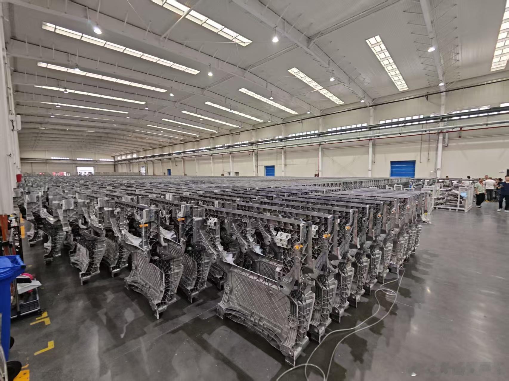 前大灯框架、前减震塔顶、D柱也采用同样的一体压铸技术和NIO-2合金材料,