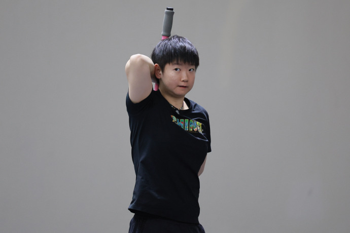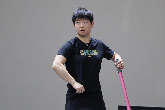 孙颖莎耍棍热身孙颖莎乐呵呵开训 开启亚锦赛适应场地训练