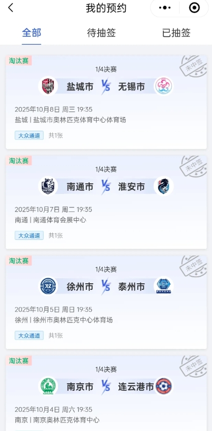 4场苏超1/4决赛都没有中签