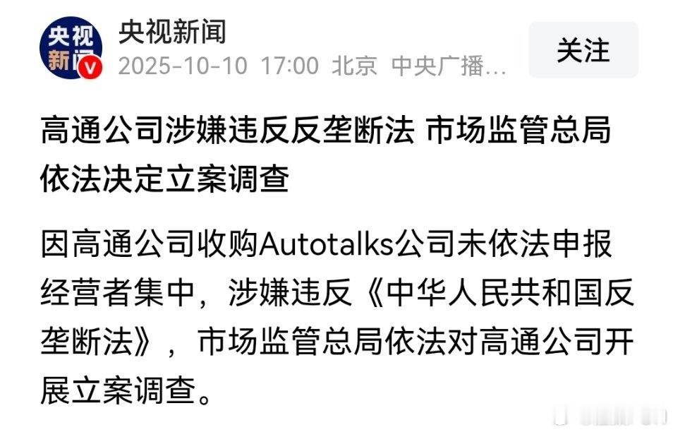 高通涉嫌违反反垄断法根据我国反垄断法,依法对高通公司开展立案调查!不知道这次高通