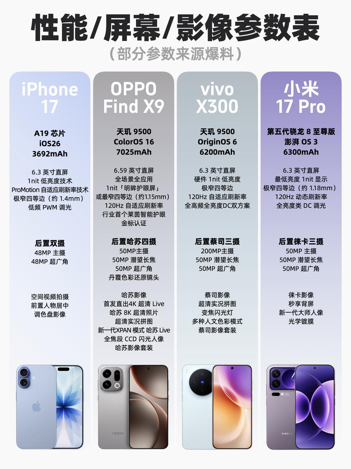 各家新旗舰都在吹拍照,谁更强啊!? 我是属于那种一出门就想拿出手机咔咔一顿拍的选手,✨平时旅游、看比赛都喜欢随手记录,结果最近想换个新手机,一下被各家旗舰整懵了。 简单看了这几款:👇 📱vivo X300: 2亿像素主摄很抢眼!蓝厂和蔡司合作,拍人像据说还是很有风格,6200mAh电池虽说比iPhone大,但要是能上7000就更好了 📱小米17 Pro: 有6300mAh电池和独特的背屏设计,而且徕卡影像色彩调校一直很不错,拍照很有德味。 📱iPhone 17: ios26系统稳定,A19处理器性能释放不用担心,但双摄配置属实有点不够看,续航对我这种重度用户来说有点压力。 📱OPPO Find X9:中杯旗舰居然给到了后置哈苏四摄,丹霞色彩还原镜头,搭配哈苏影像技术、首发4K live,要知道丹霞色彩还原镜头还是X8U那颗升级后的,拍人像和风景有多出片就不必说了。ColorOS 16系统也很顺滑,7025mAh超大电池更是妥妥的续航王!而且还是孙颖莎同款,要是拿Find X9去拍莎莎的比赛,想想都美滋滋~😍 话说,大家觉得哪家的中杯旗舰更香啊?? 旗舰机 OPPOFindX9 数码科技 手机推荐 vivoX300 换机指南 小米17Pro iPhone17