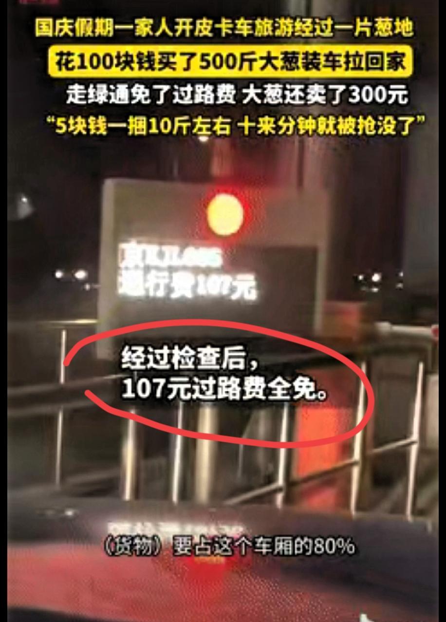 北京大哥花100块买500斤葱,倒赚200多还免了过路费?这哪是会过日子,分明戳中了农产品流通的大痛点! 别光夸大哥精明,这事细想全是门道。地头2毛一斤的葱,到城里超市就得块把钱,中间差价全耗在了流通上——多级批发层层加价,运输保管成本又高,农户只能贱卖止损,消费者还得买贵菜。 大哥这波操作,其实是给产销两端搭了座“短桥”。既帮农户快速清了货,避免烂在地里,自己也借着绿通政策省了钱,最后把葱卖给有需要的人,三方都没亏。这可比那些伪装绿通骗路费的靠谱多了。 说到底,要是流通环节能再精简点,农户不用贱卖,我们也能少花钱。你说以后要是多些这种“直连”玩法,“菜贱伤农、菜贵伤民”的难题会不会好点?