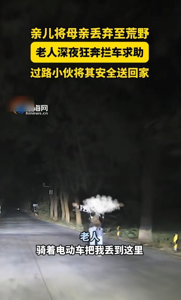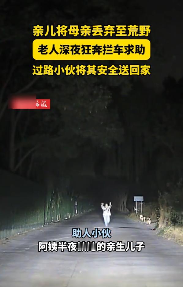 “离了个大谱!”10月8日报道,河南一小伙开车在路上时,突然遇到一位大妈举着双手快速跑过来,小伙被吓了一跳,问过之后才知道原来大妈竟然是被自己的亲生儿子给遗弃了![熊猫] 10月8日深夜,河南一位小伙开车经过偏僻路段,突然看到路边有人在招手,这个时间点,这种地方,换谁都会心里打鼓,但小伙还是停了车,问了句“怎么了”。 眼前的大妈说,自己刚跟儿子吵了架,儿子骑电动车把她载到这里就走了,周围黑漆漆的,连个路灯都没有,她一个人站在那儿不知道该往哪走,大妈希望小伙能帮个忙,把她送到有灯光的地方去。 更让人没想到的是,大妈说这种事已经不是第一次了,小伙听完也懵了,但还是把人送到了安全的地方。 这次河南的事,幸好遇到了好心的小伙,但不是每次都能这么幸运,我们不能把老人的安全寄托在运气上,得从制度、法律、社会支持这些方面一起发力。 看到河南这位大妈深夜被儿子遗弃荒野的新闻,网友们真是又气又心疼。 绝大多数网友的第一反应是气愤和难以理解,大家普遍认为,无论母子间有什么矛盾,将年迈的母亲深夜弃于荒郊野外,都是极其不负责任且危险的行为,“这已经不是简单的家庭矛盾了,这是涉嫌违法的遗弃行为!” 同时网友们也非常心疼这位大妈,一位网友说:“难以想象大妈当时有多害怕和无助,黑夜、荒郊、孤立无援,这给老人心理上造成的创伤太大了,” 尤其当得知这可能不是第一次发生时,更多人感到揪心,认为这种行为对母亲的身心伤害是不可逆的。 不少网友分析,除了当事人可能存在的个人品性问题外,这背后或许还隐藏着长期的家庭矛盾、经济压力,或是照顾老人产生的疲惫与怨气。 有评论就说:“清官难断家务事,但我们身边确实有一些家庭,因为长期的沟通不畅和积怨,导致亲情关系破裂。” 有网友分享:“家人之间有了矛盾,最需要的是坐下来心平气和地谈,而不是用这种极端方式发泄。” 那么对于这件事情,您有什么想说的呢? 信息来源:潮新闻