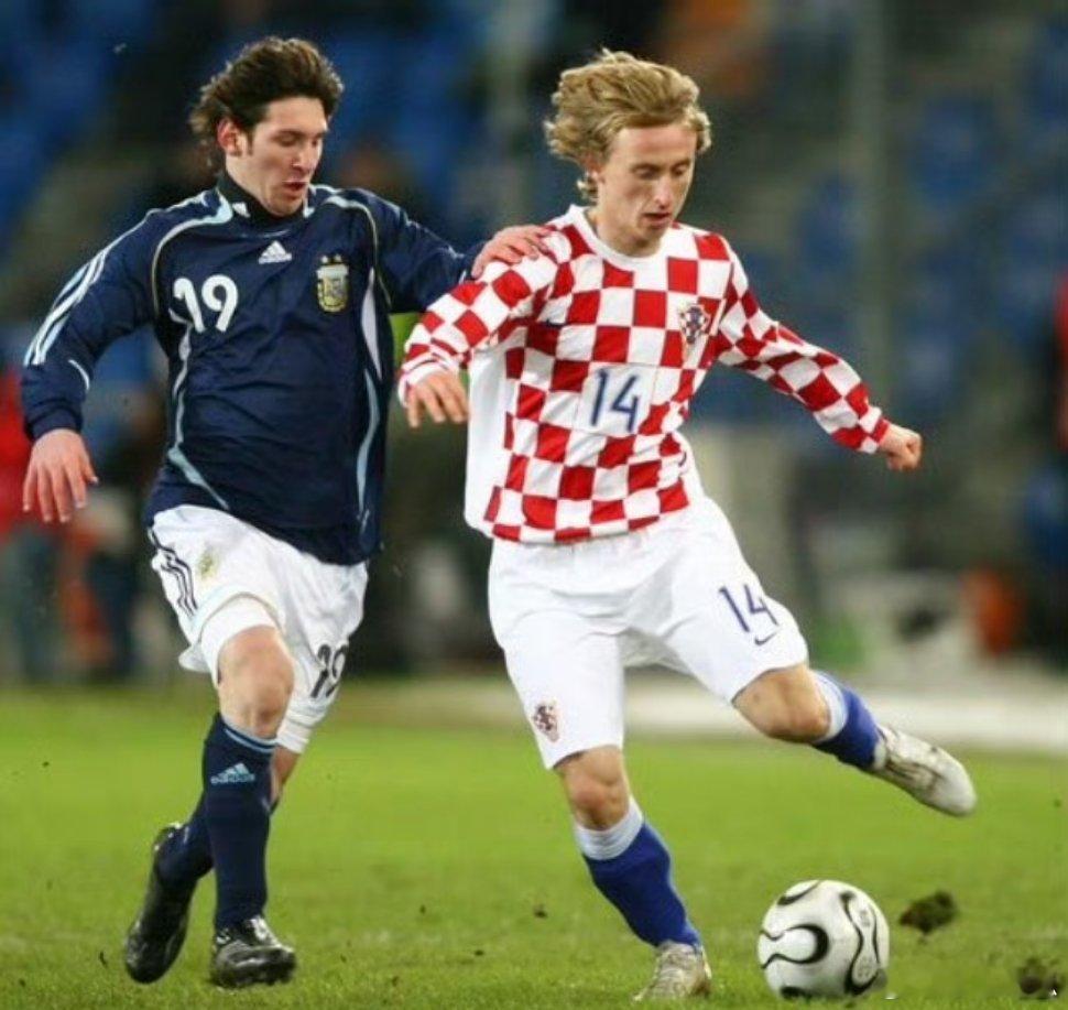 2006 年 3 月 1 日,克罗地亚 3-2 击败阿根廷的国际友谊赛,藏着两位金球先生的重要里程碑:20 岁的莫德里奇迎来国家队首秀,18 岁的梅西则攻入个人国家队首球。
