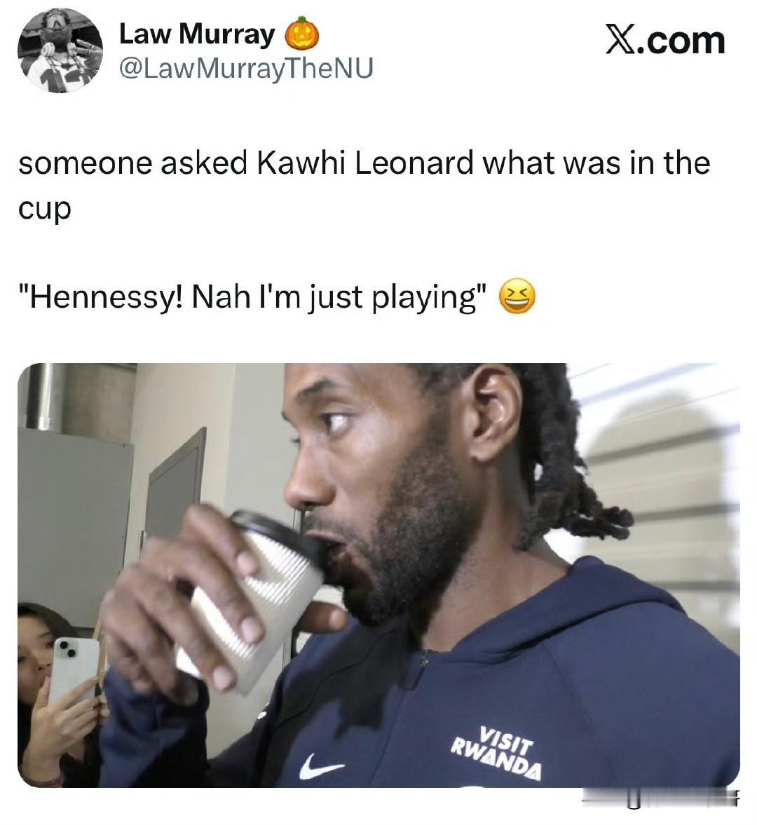 太损了!!!记者问伦纳德在喝什么,伦纳德:轩尼诗! 轩尼诗最近大赚了一笔,篮球界都在流传着一个话题,那就是你在喝什么,答:轩尼诗! 这彻底让轩尼诗大火,轩尼诗的营销总监是不是赚的盆满钵满的,不得给升个值发个奖金啥的。 就连不善言谈的卡哇伊都会开玩笑了……今天在采访的时候,小卡拿着杯子在喝着东西,记者也是非常好奇,他问小卡:你这杯子里装的什么好东西,喝的这么起劲?伦纳德:必须是轩尼诗!随后小卡也是表示自己开了个玩笑而已。 都太损了啊,现在轩尼诗已经被当成一个笑话了,尽管他们赚了不少,但是这一次可能并不是共赢的局面。