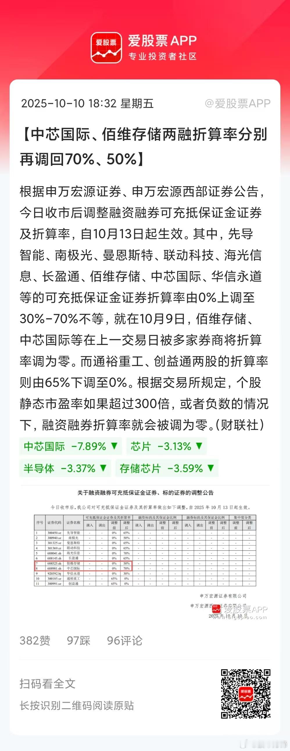 中芯国际两融折算率再调回70%,下周一10月13日生效!今天刚从70%调到0,下
