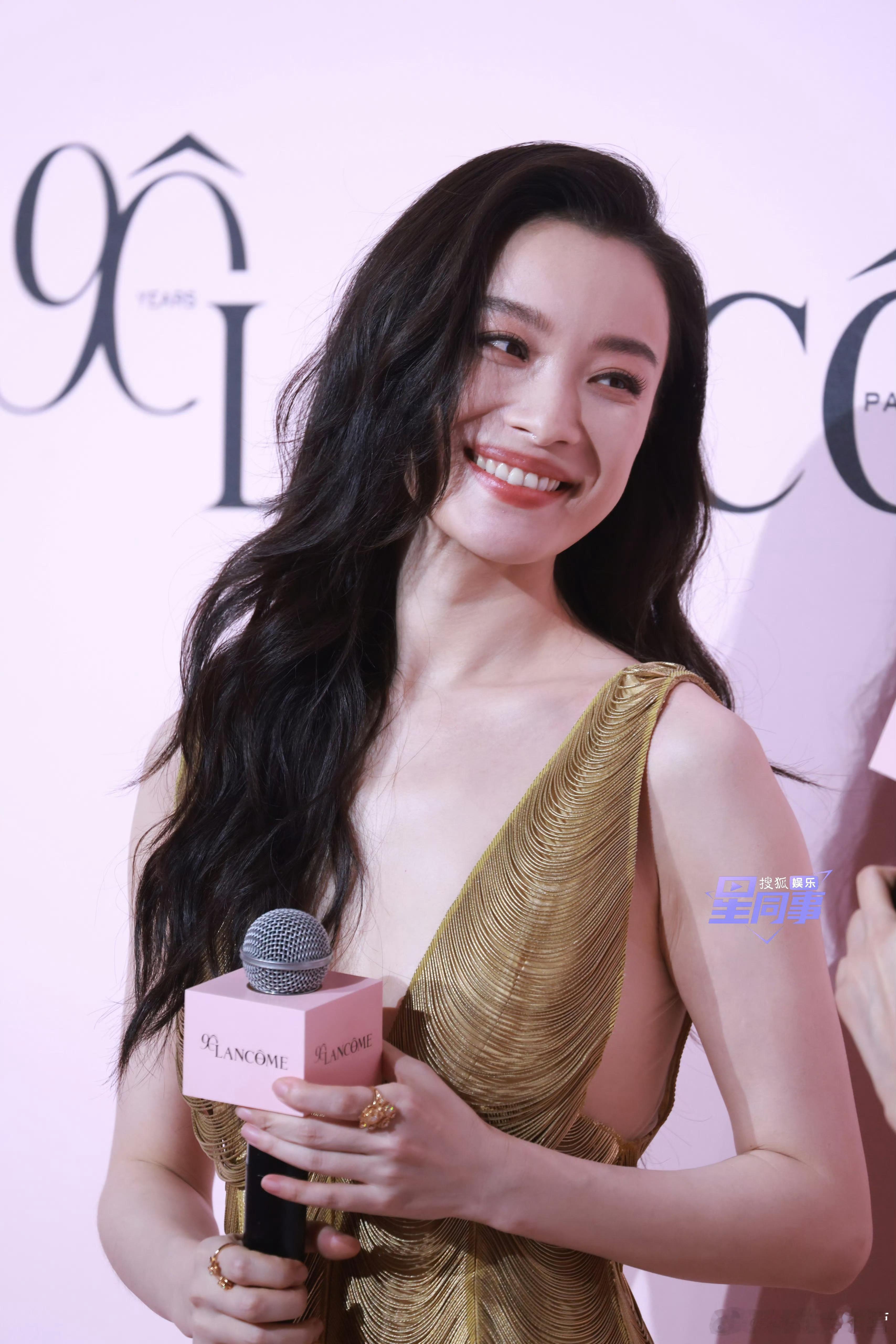 倪妮今日线下品牌活动的媒体生图~大杀四方、一骑绝尘的生图美貌倪妮深v鎏金裙