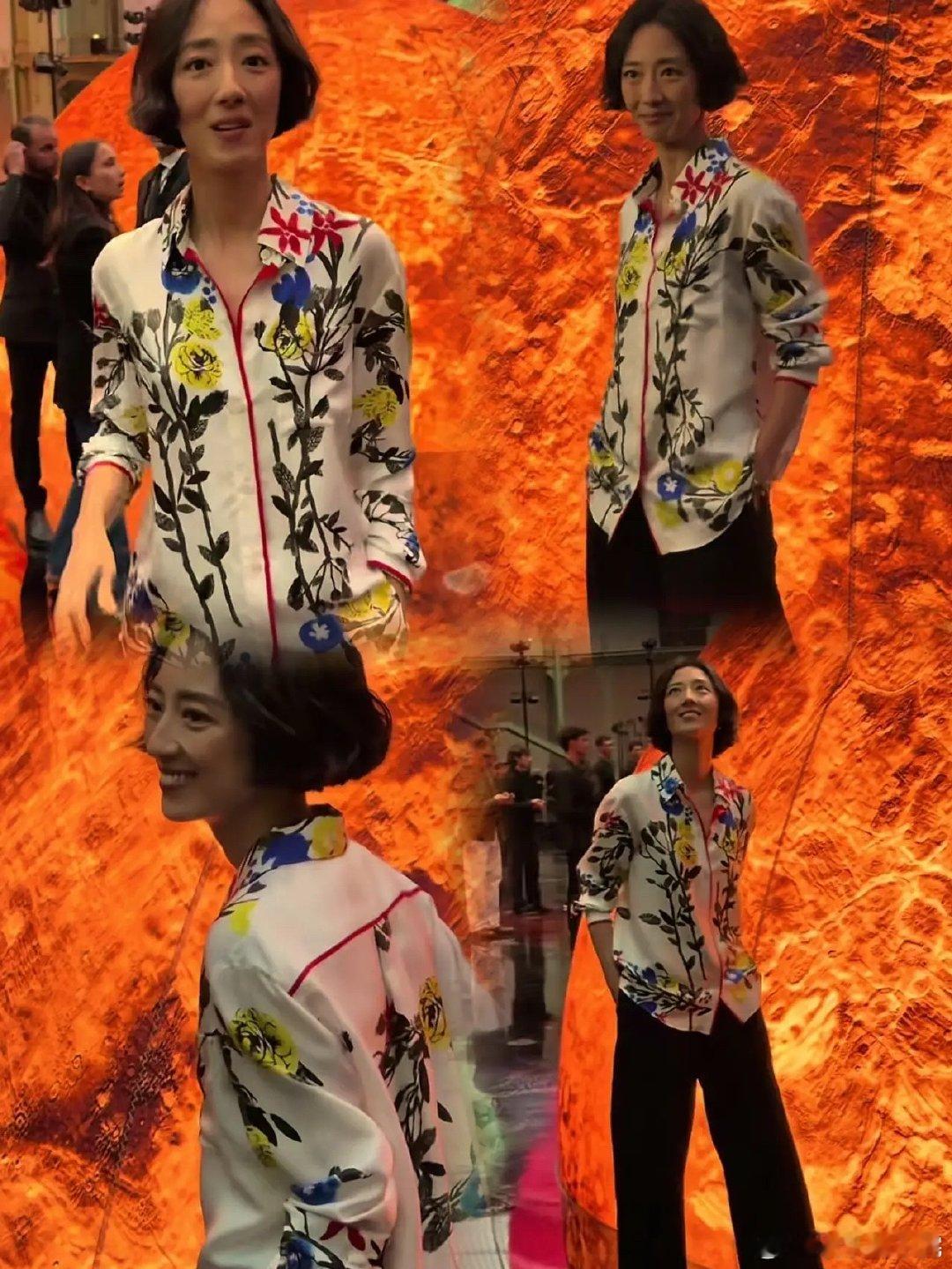 桂纶镁瘦到认不出!最近桂纶镁出席巴黎时装周,她身穿白色印花上衣,搭配黑色西裤,一