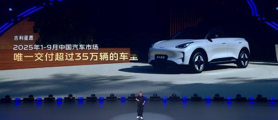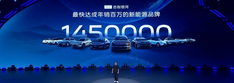 在今晚的 2025 吉利汽车用户大会及 2026 款吉利星愿上市发布会中,吉利银河宣布成为最快达成年销百万的新能源品牌。